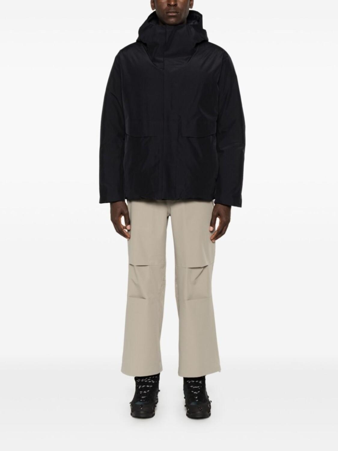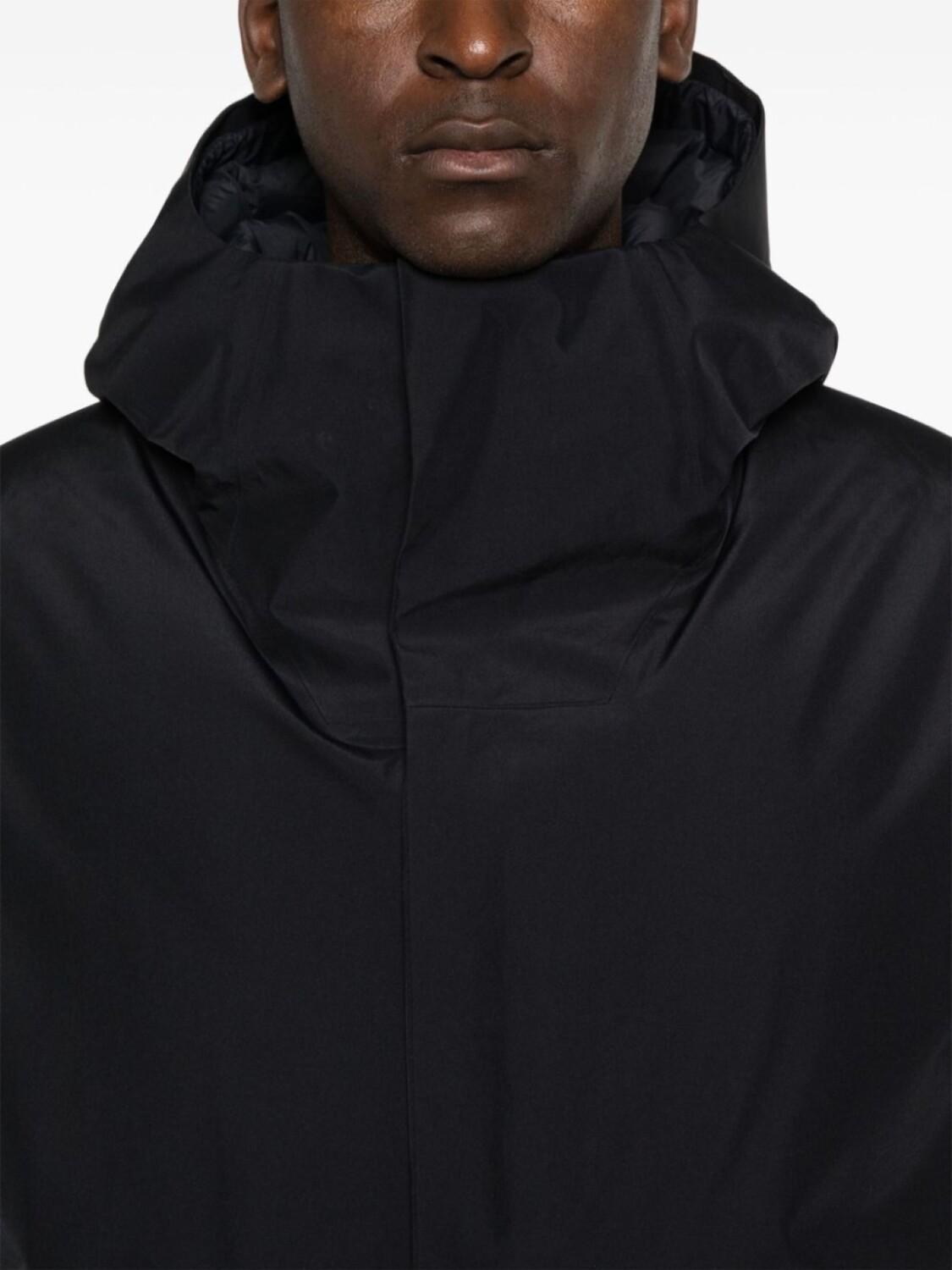 Черный водонепроницаемый материал GORE-TEX наполнитель из пуха и пера застежка-молния спереди утепленная конструкция утепленный дизайн классический капюшон длинные рукава два боковых кармана с клапанами два боковых кармана на молнии стеганая подкладка внутренний карман на молнии внутренний накладной карман прямой подол