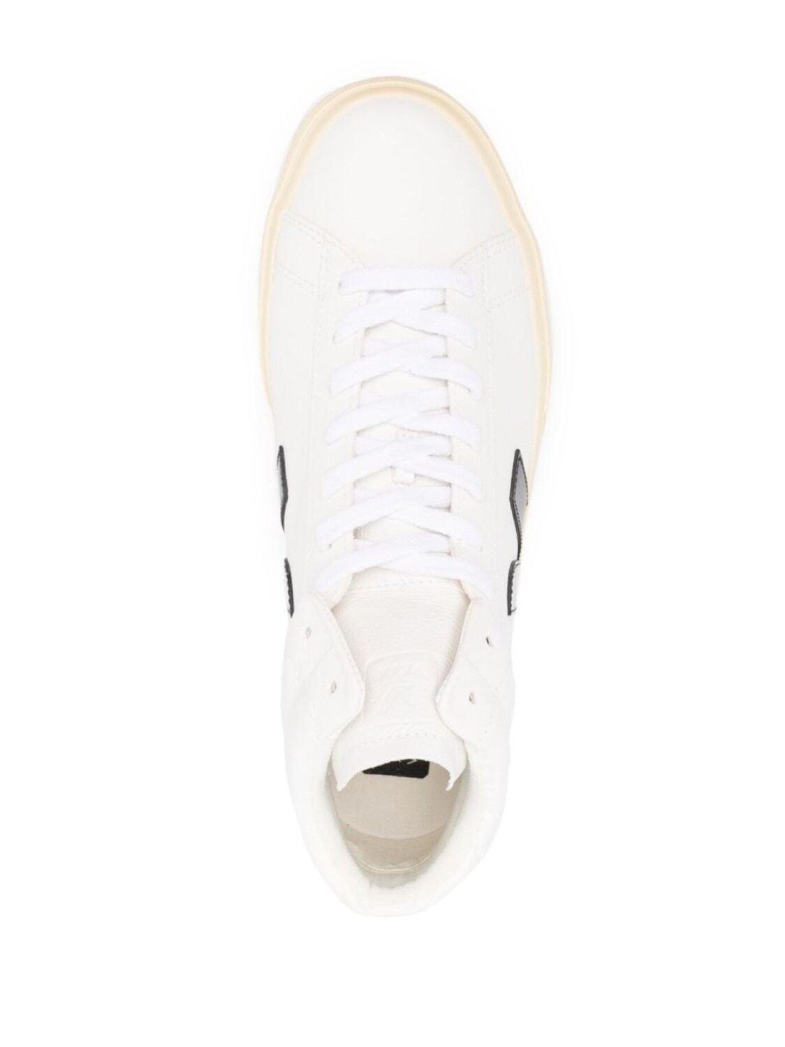 Белый/черный, телячья кожа, закругленный носок, шнуровка спереди, тисненый логотип на язычке, нашивка с логотипом сбоку и плоская резиновая подошва.