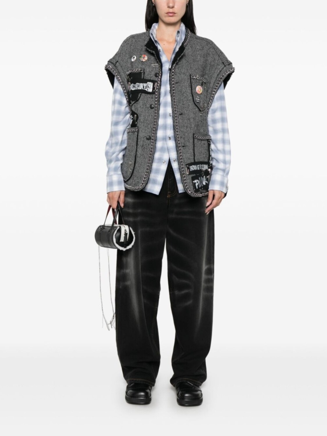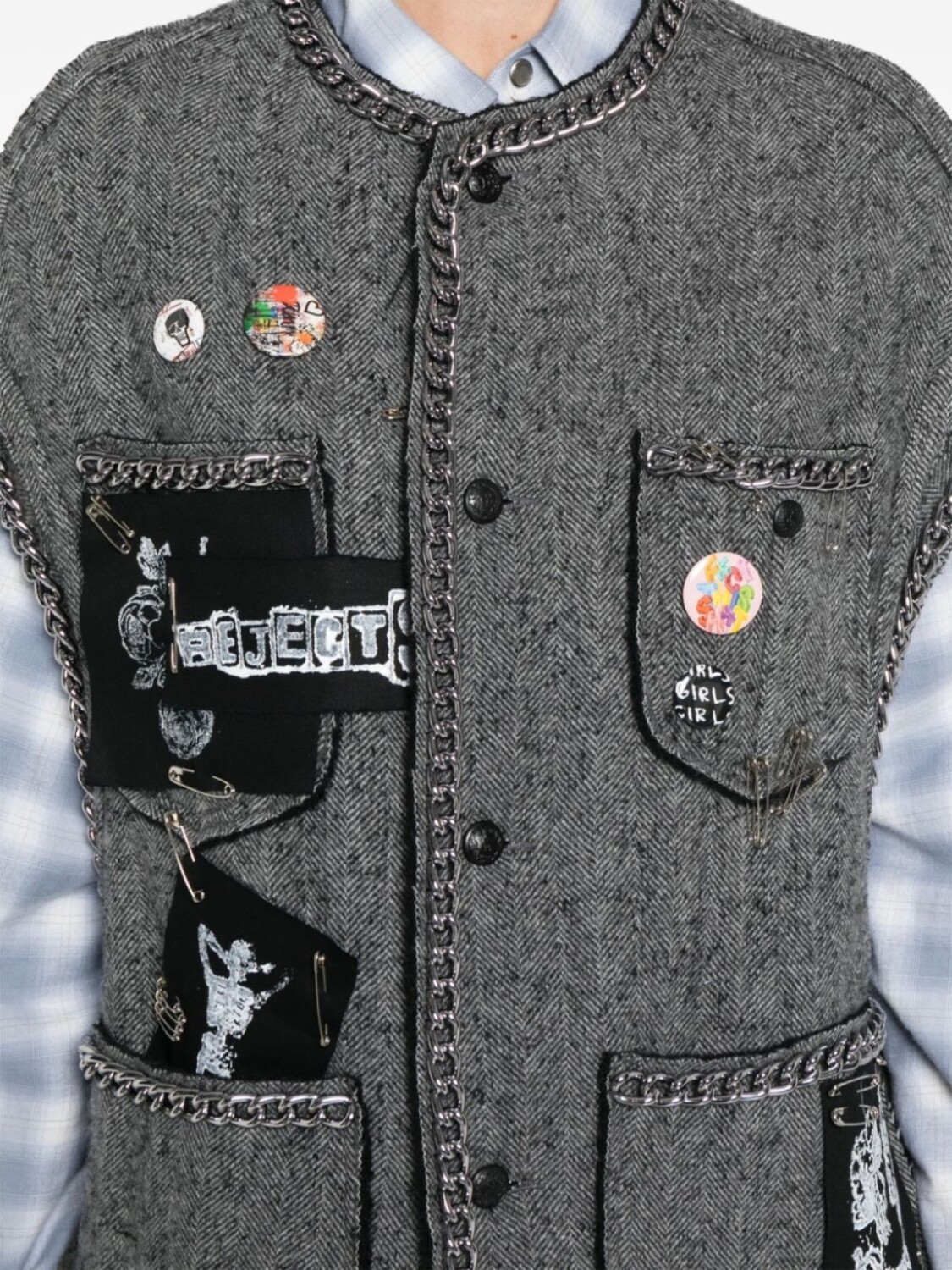 R13 жилет с узором в елочку, серый