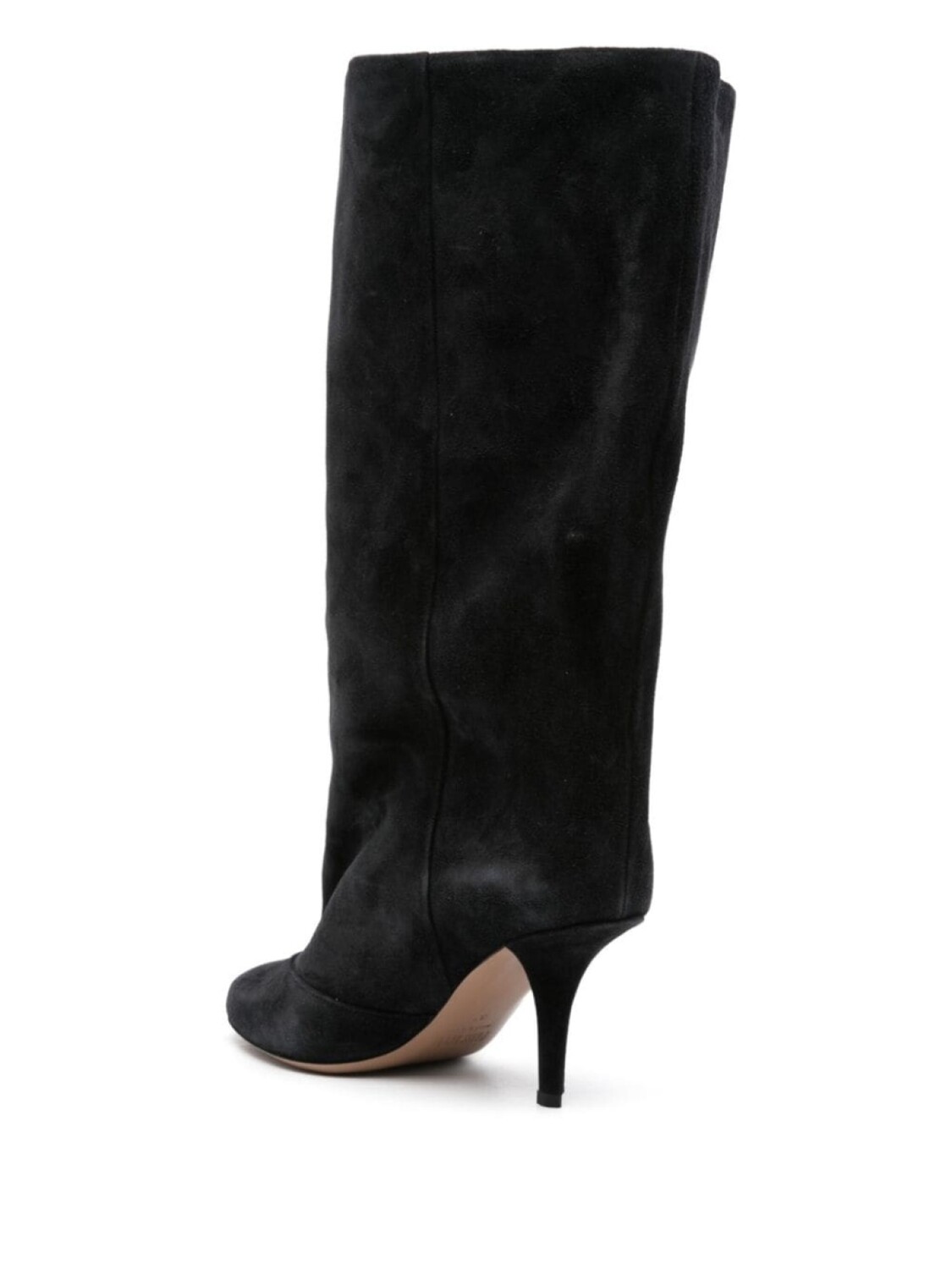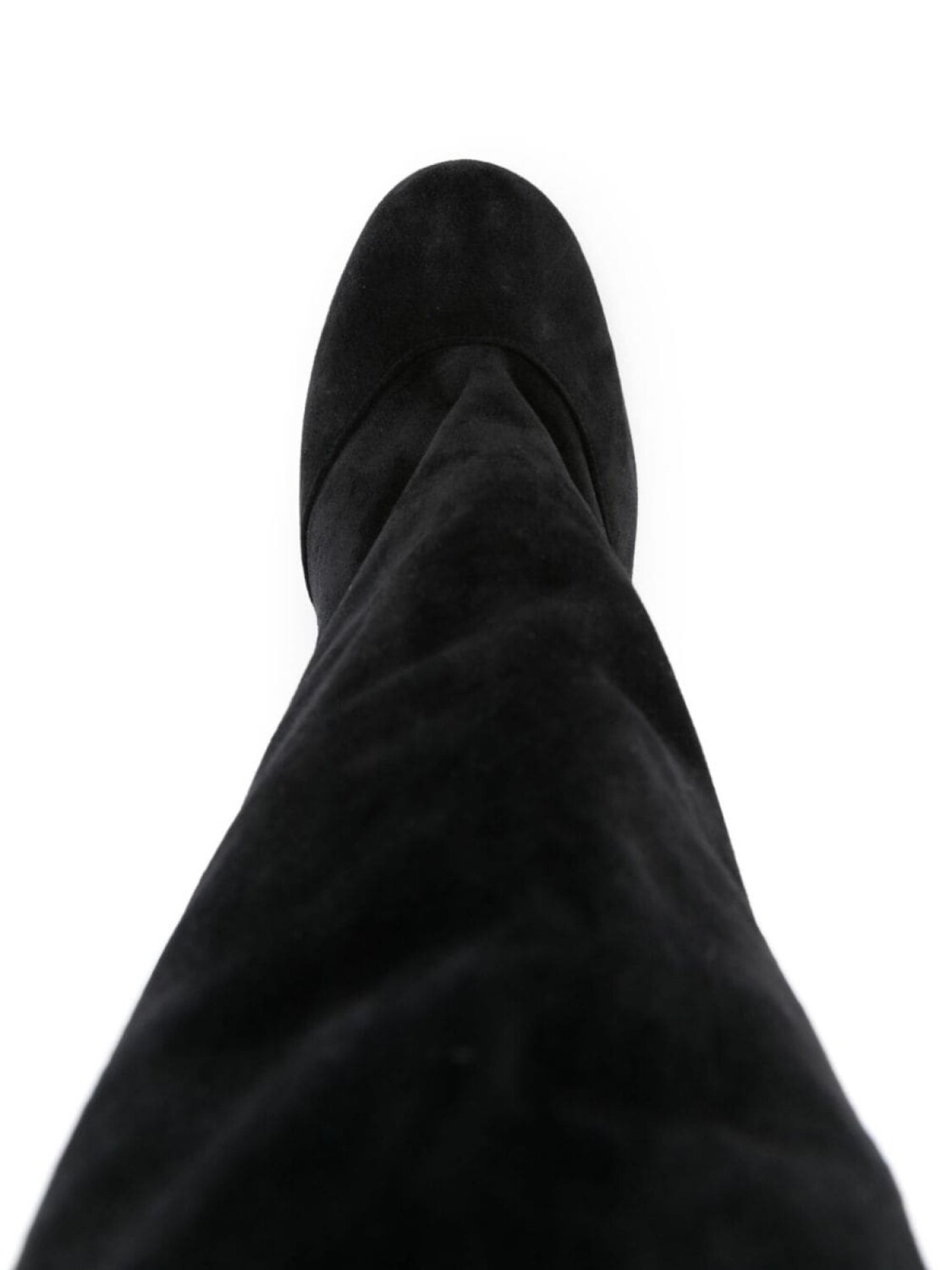 Черный, телячья кожа, замша, миндалевидный носок, стелька с логотипом, каблук-шпилька 85 мм, кожаная подошва, без застежки