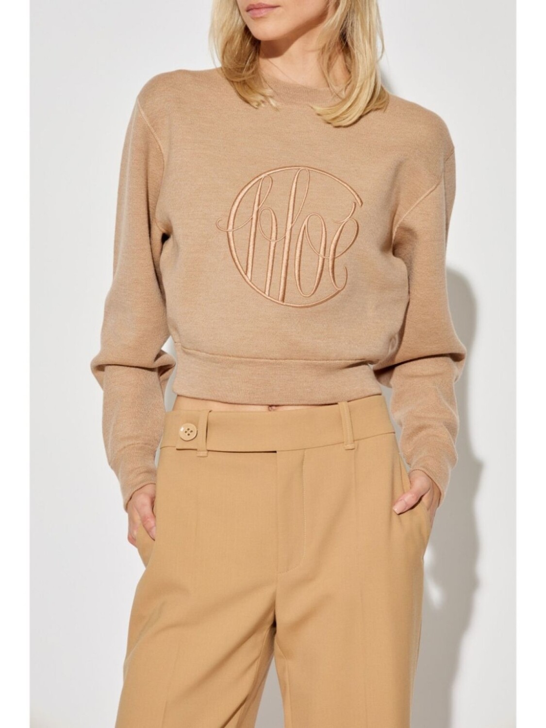 Chloé шерстяной джемпер с вышитым логотипом, нейтральный цвет
