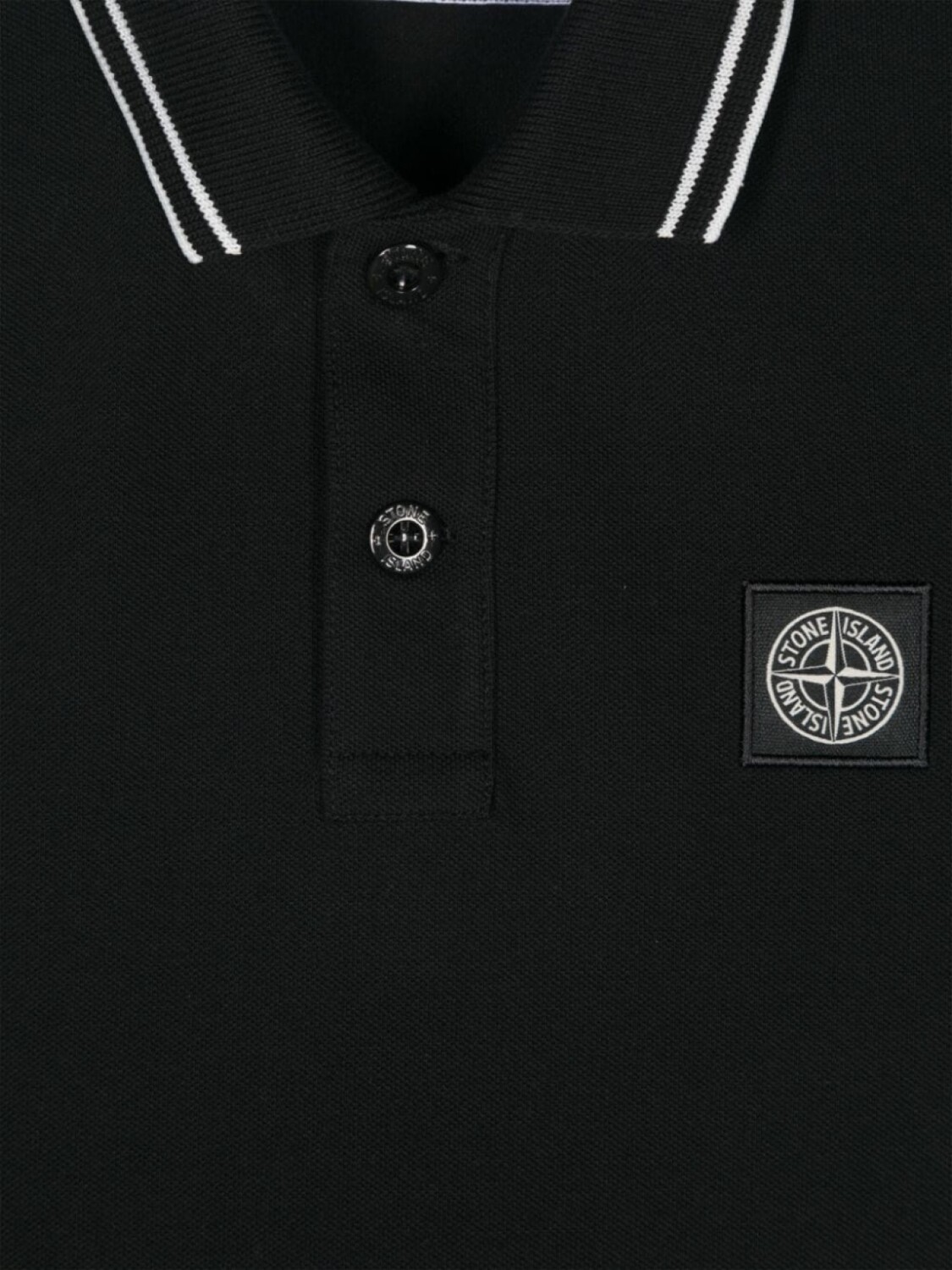 Stone Island Junior рубашка-поло из пике с нашивкой-компасом, черный