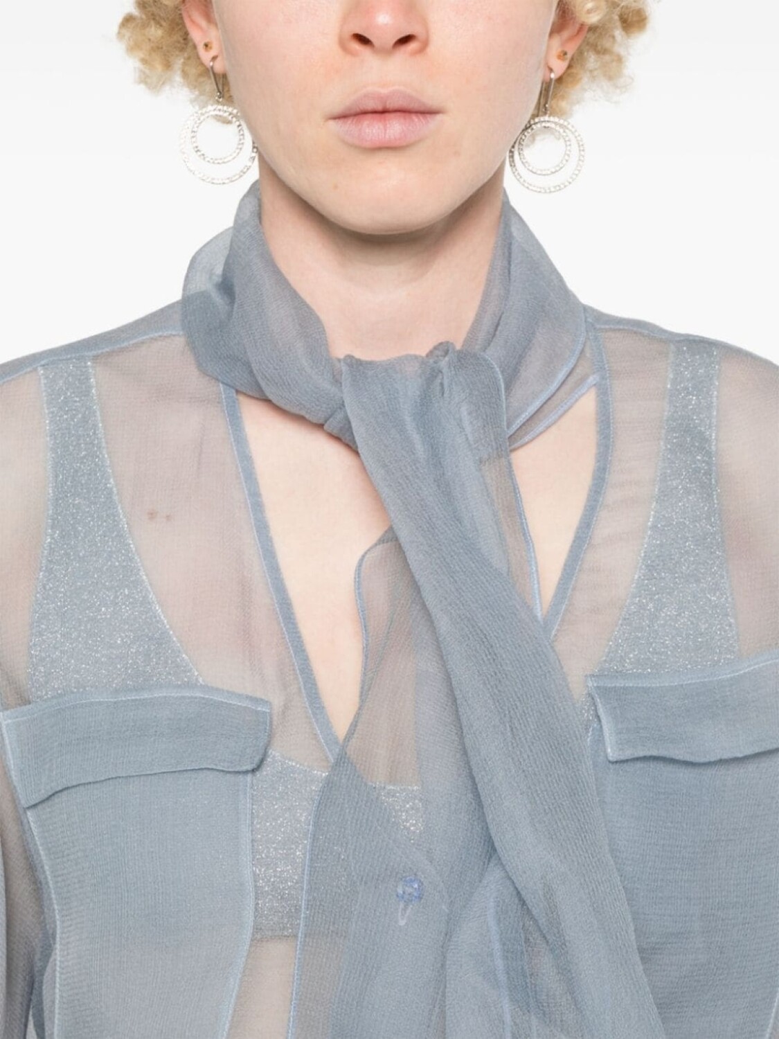 Giorgio Armani рубашка из органзы с шарфом, синий