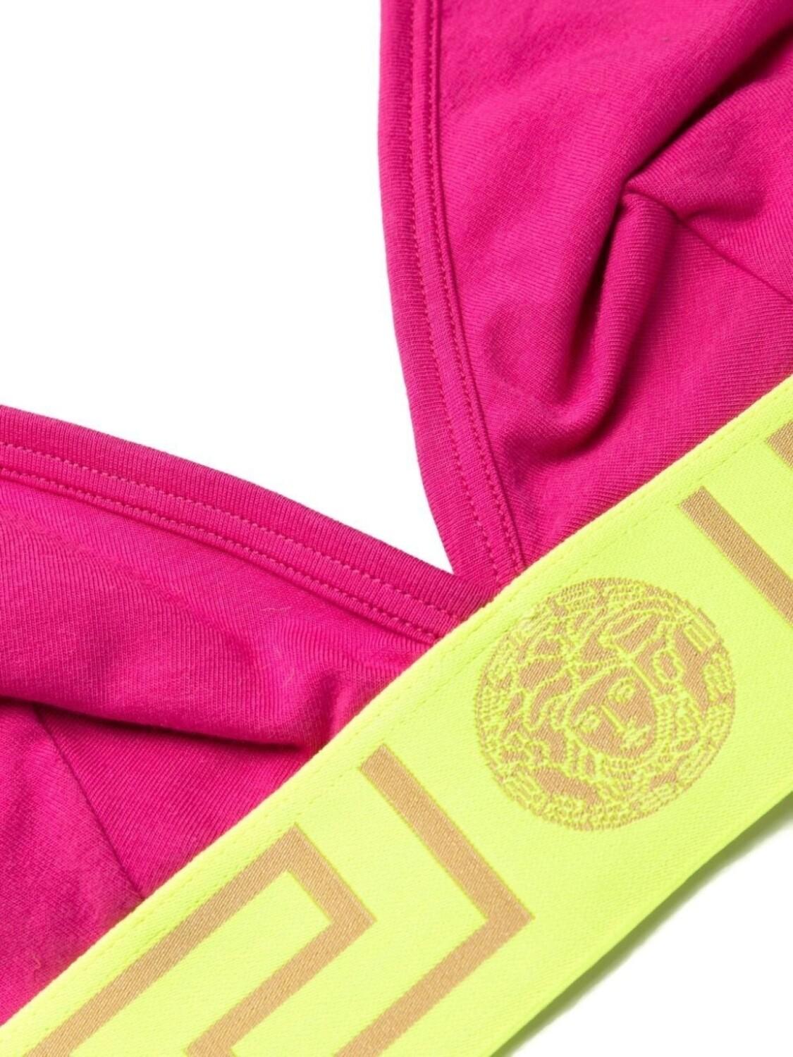Розовый, желтый, эластичный хлопок, знаковый принт La Greca, тонкие бретели и регулируемый дизайн.