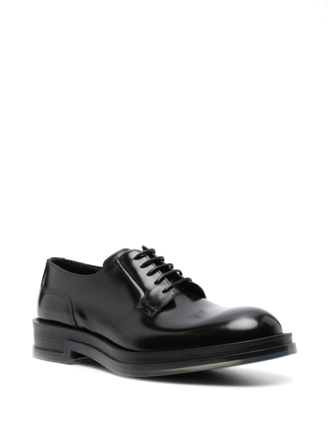 Черный, телячья кожа, контрастные вставки, миндалевидный носок, шнуровка спереди, кожаная подкладка, кожаная стелька с логотипом, наборная подошва, прозрачная резиновая подошва