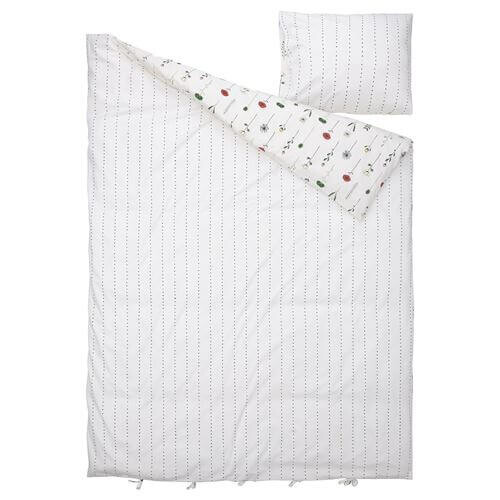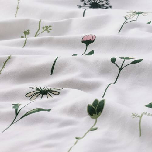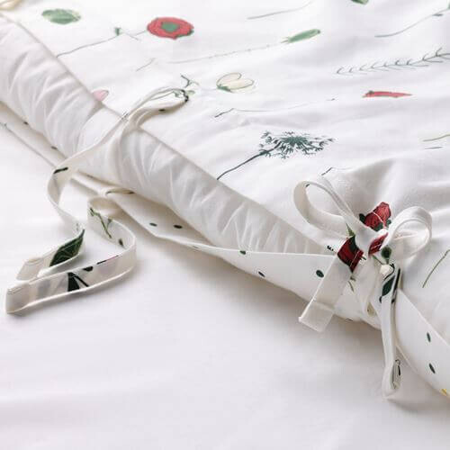 Комплект Наттслэнда - с одной стороны пододеяльник украшает орнамент в виде цветов на длинных стеблях, а с другой — темно-зеленый горох, расположенный рядами. Смесь хлопка и лиоцелла хорошо поглощает и отводит влагу, помогая организму поддерживать комфортную и равномерную температуру.
