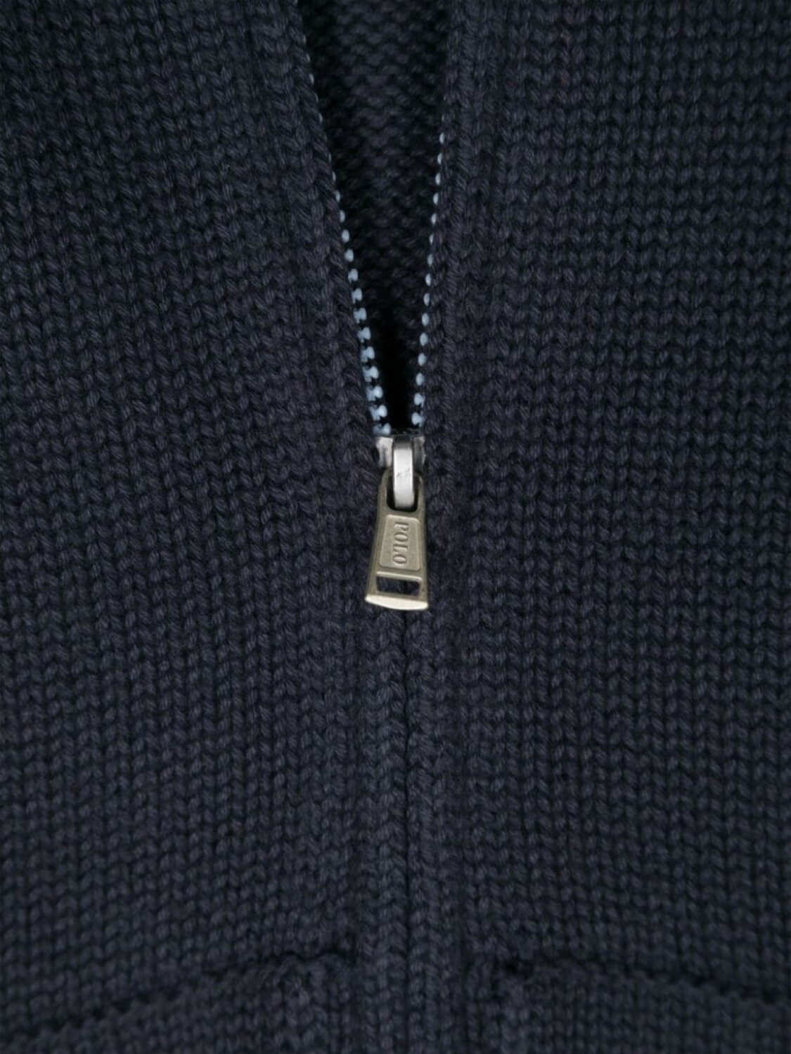 Темно-синий хлопковый трикотаж, фирменный мотив Polo Pony, застежка-молния спереди, круглый вырез горловины, длинные рукава, ребристые манжеты и подол, два боковых кармана-кенгуру