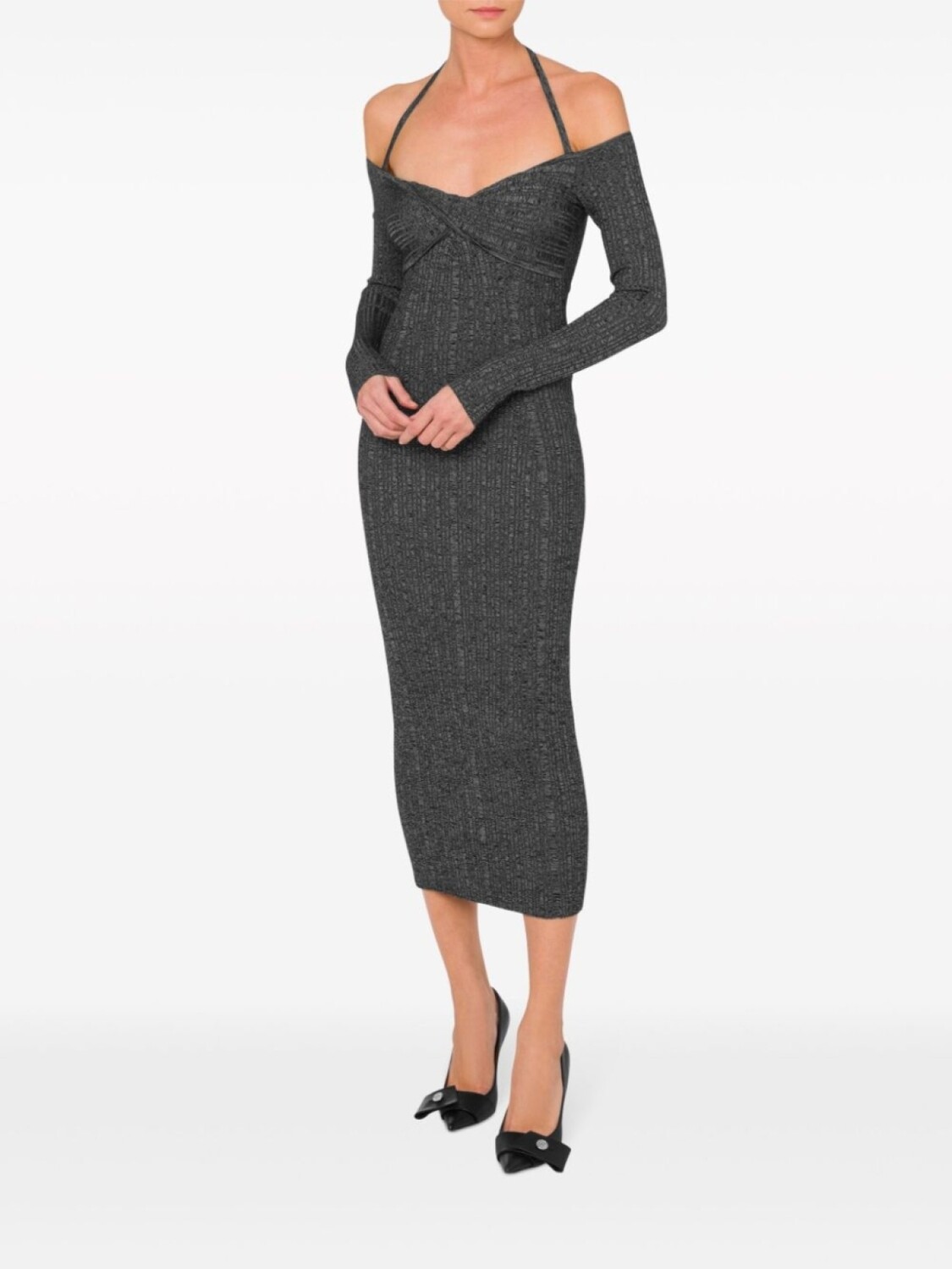 MOSCHINO JEANS платье миди в рубчик с открытыми плечами