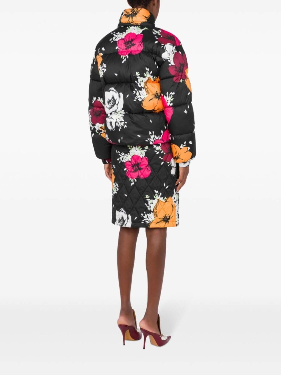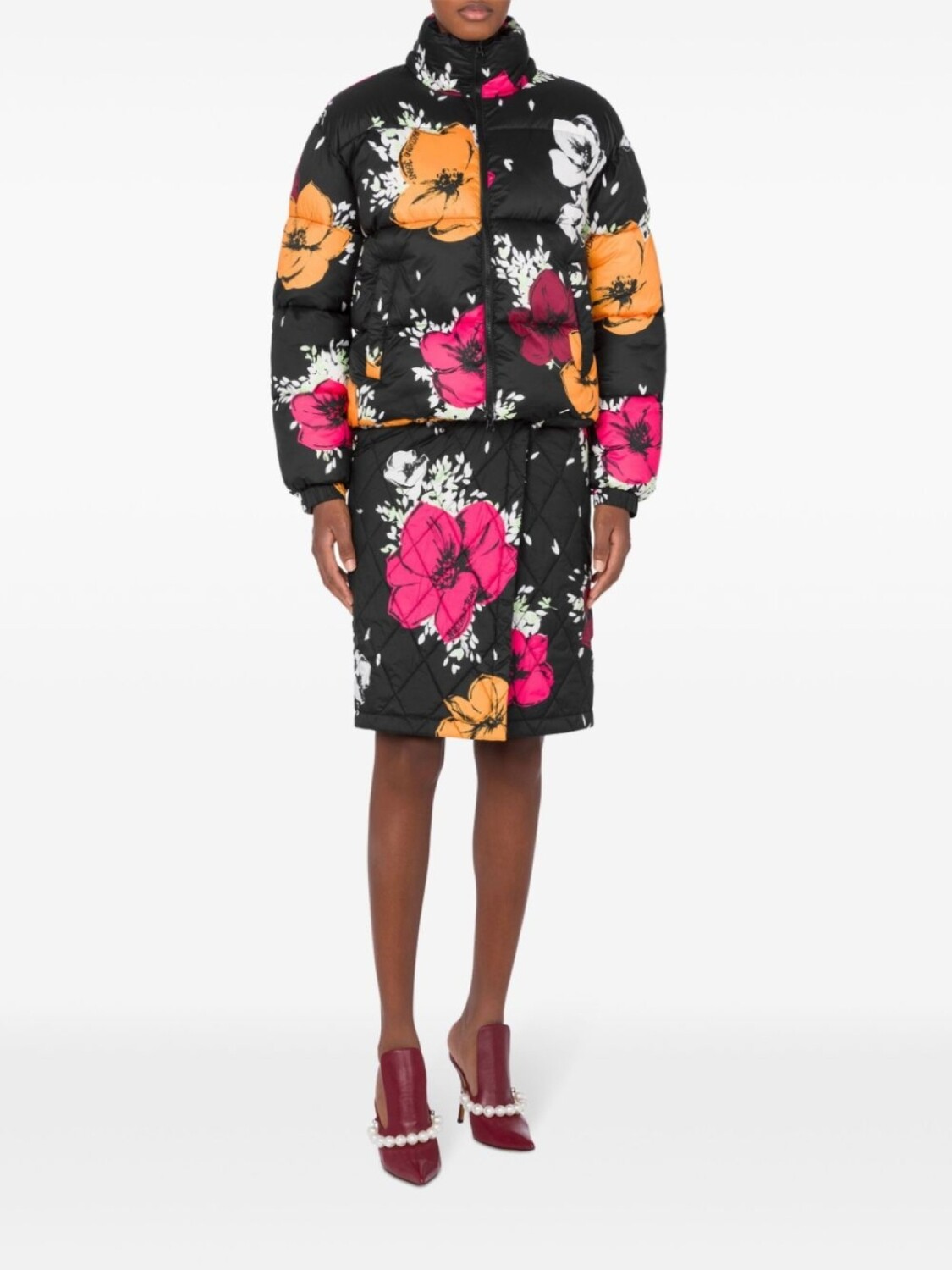 MOSCHINO JEANS пуховик с цветочным принтом, черный