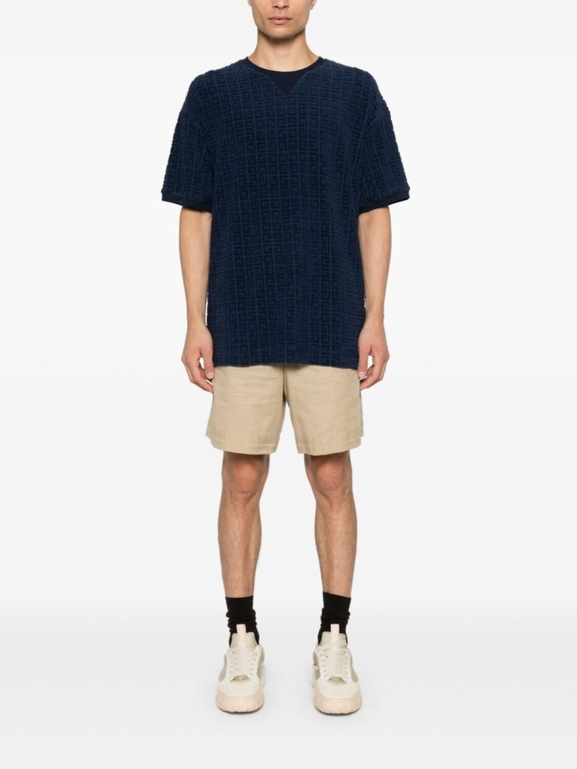 Темно-синий, смесовый хлопок, знаковый узор 4G, махровый эффект, круглый вырез, короткие рукава, прямой подол