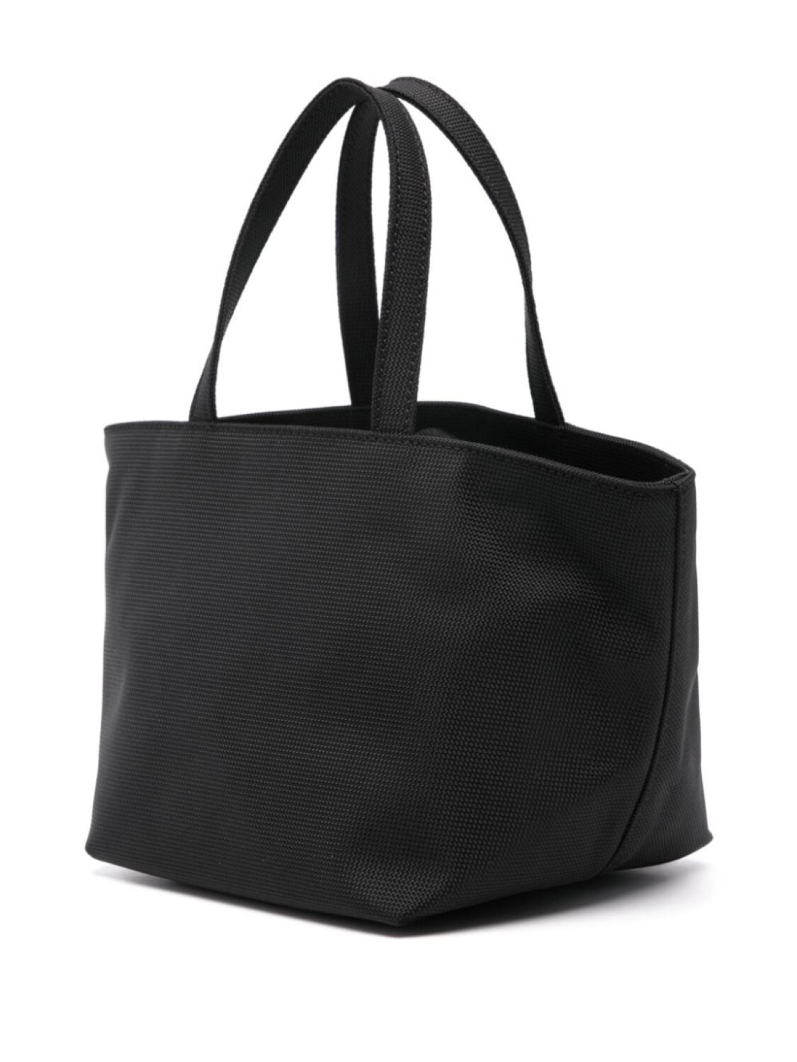 Черный холст две ручки с плоским верхом регулируемый съемный плечевой ремень тисненый логотип спереди основное отделение внутренний накладной карман внутренний карман на молнии внутренний слот для карт подкладка застежка сверху