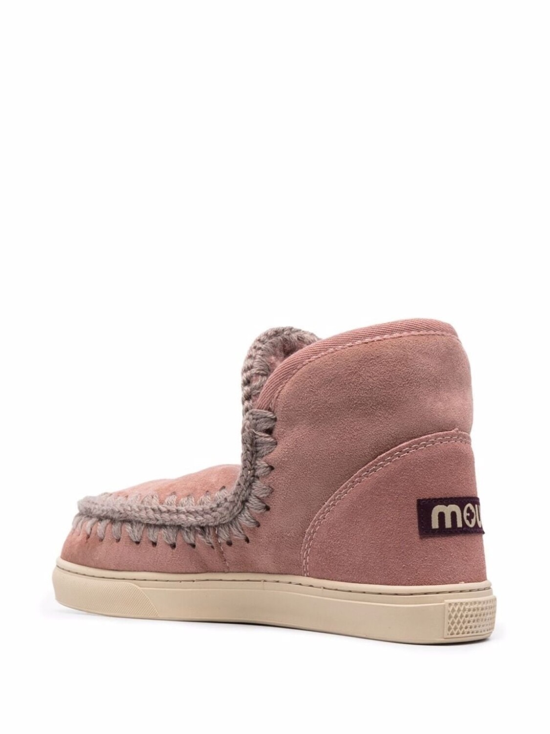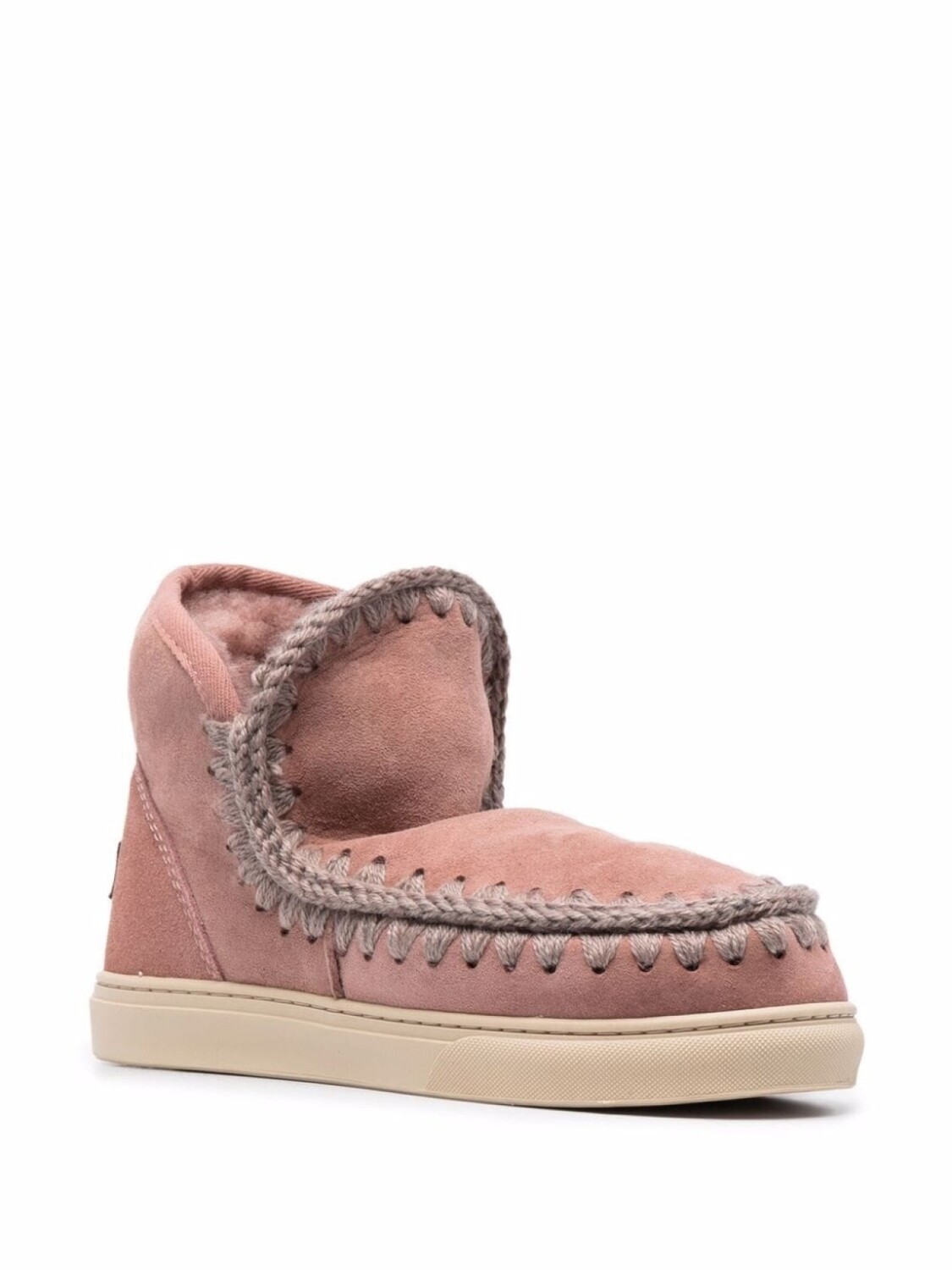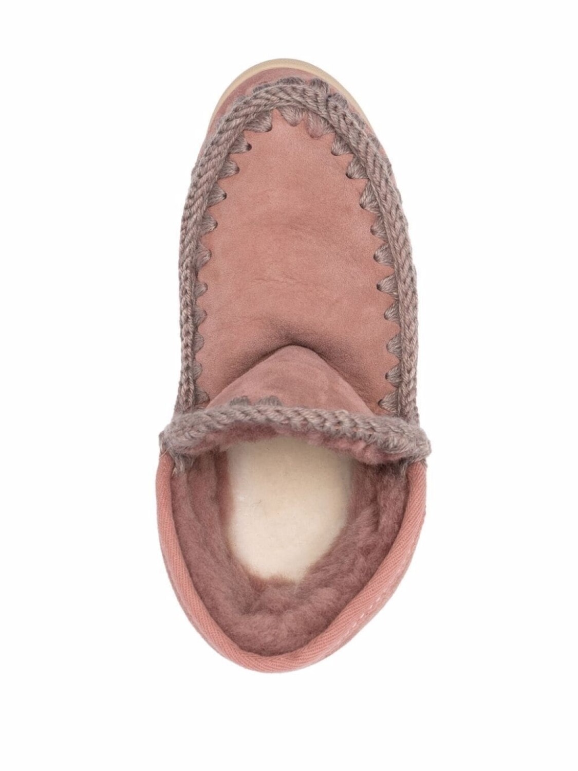 Миндалевидный носок, контрастная строчка, подкладка из искусственной овчины и плоская резиновая подошва.