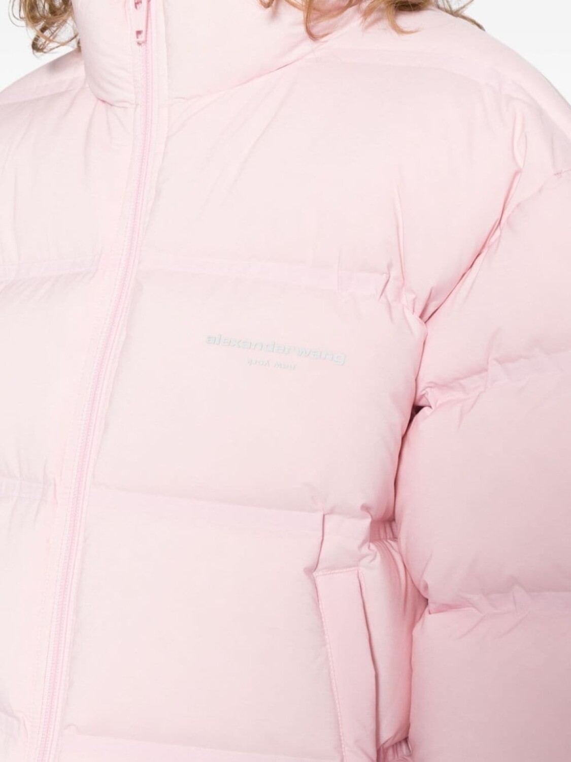 Alexander Wang укороченный пуховик с логотипом, розовый