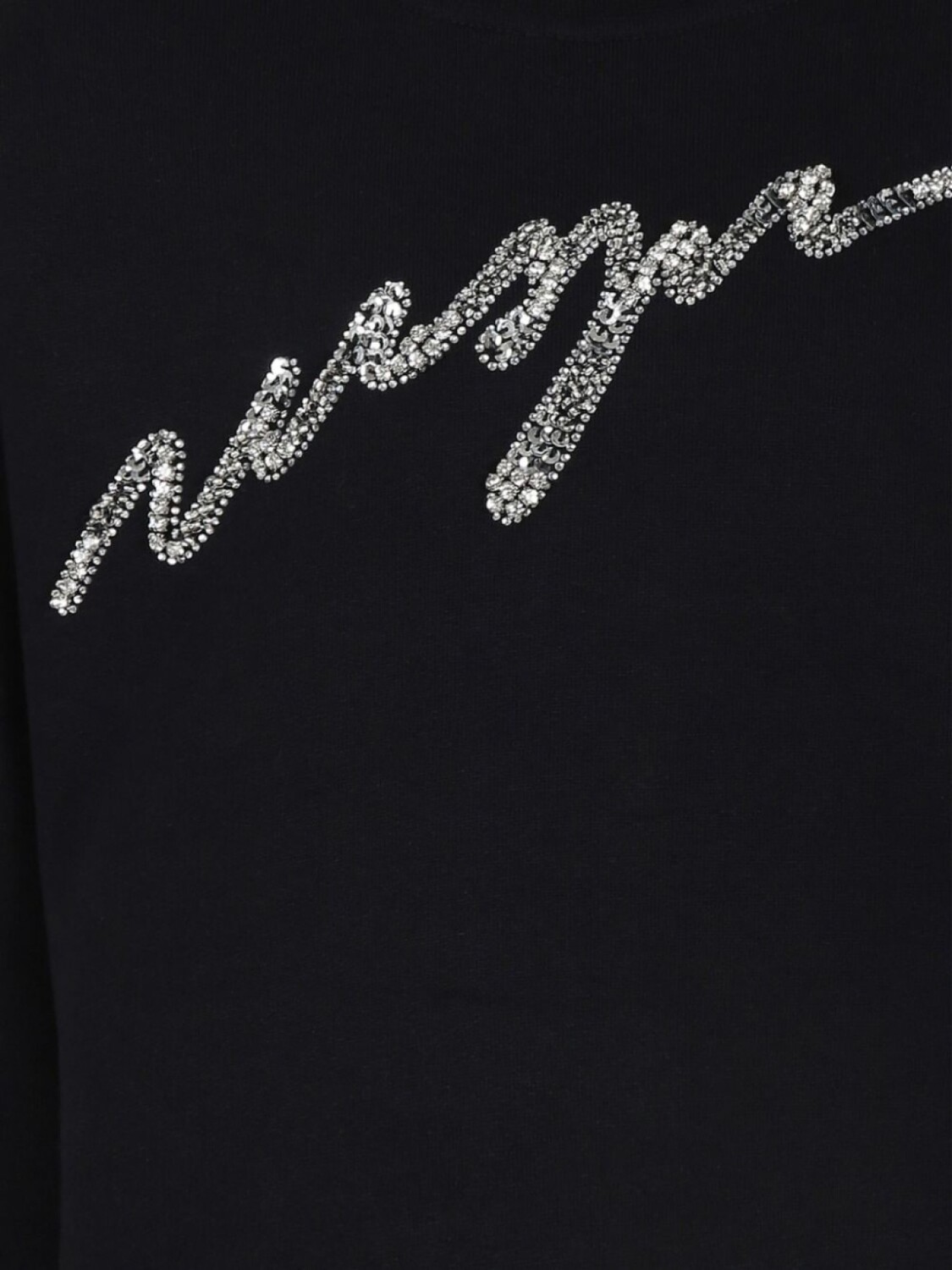 MSGM Kids платье с аппликацией логотипа и кристаллами, черный