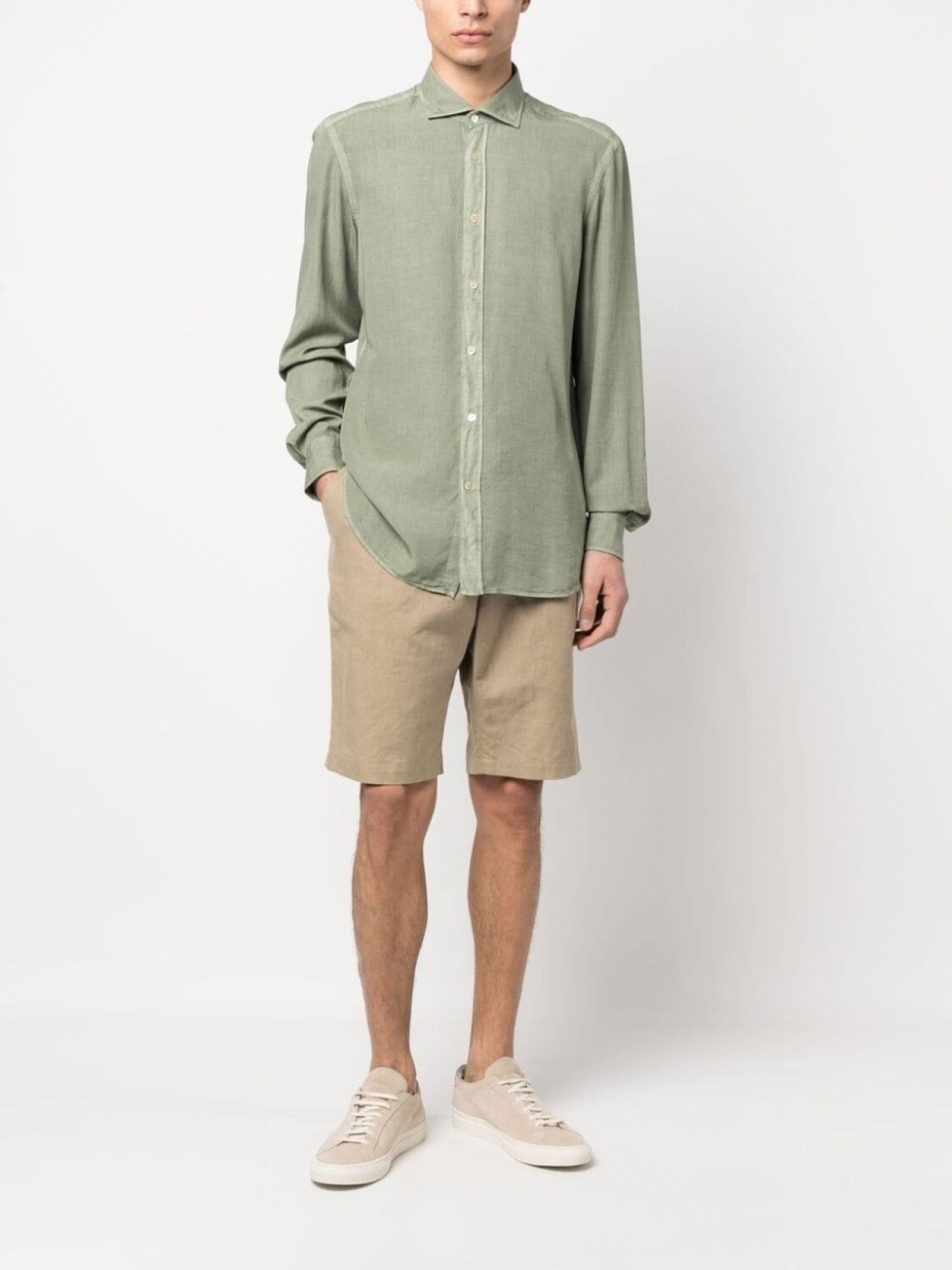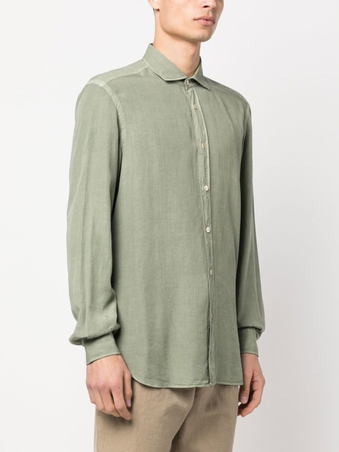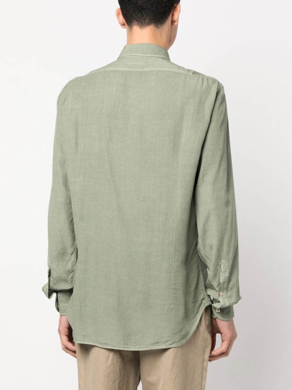 Подробнее о товаре: Серо-зеленый, лиоцелл, строчка в тон, классический воротник, застежка на пуговицах спереди, длинные рукава, манжеты на пуговицах и закругленный подол. Этот товар как минимум на 50% состоит из материалов, которые признаны более безопасными для окружающей среды, и/или произведены с использованием методов, которые помогают сократить потребление воды и химических веществ. Узнать больше о том, какие товары получают отметку «Ответственный выбор», можно из материала «Как мы оцениваем экологичность и этичность».