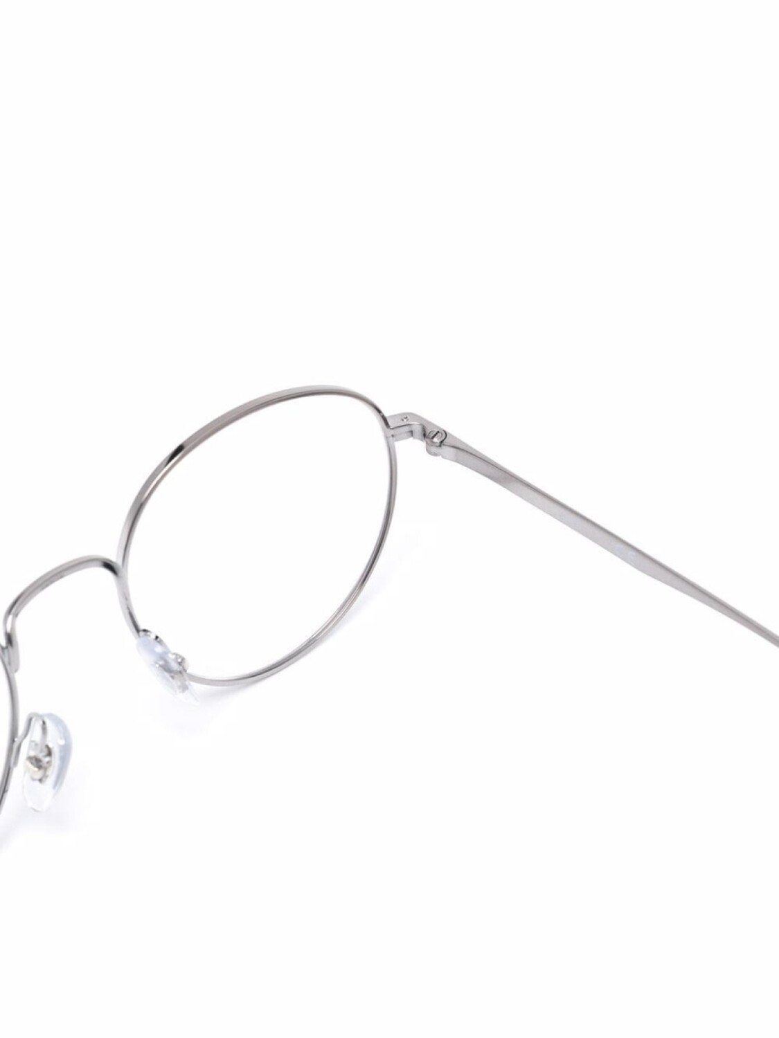 Круглая оправа, прозрачные линзы, носоупоры, прямые дужки, гравированный логотип на дужках и дужки с закругленными концами. Обратите внимание, что на FARFETCH продаются оправы с линзами без диоптрий.