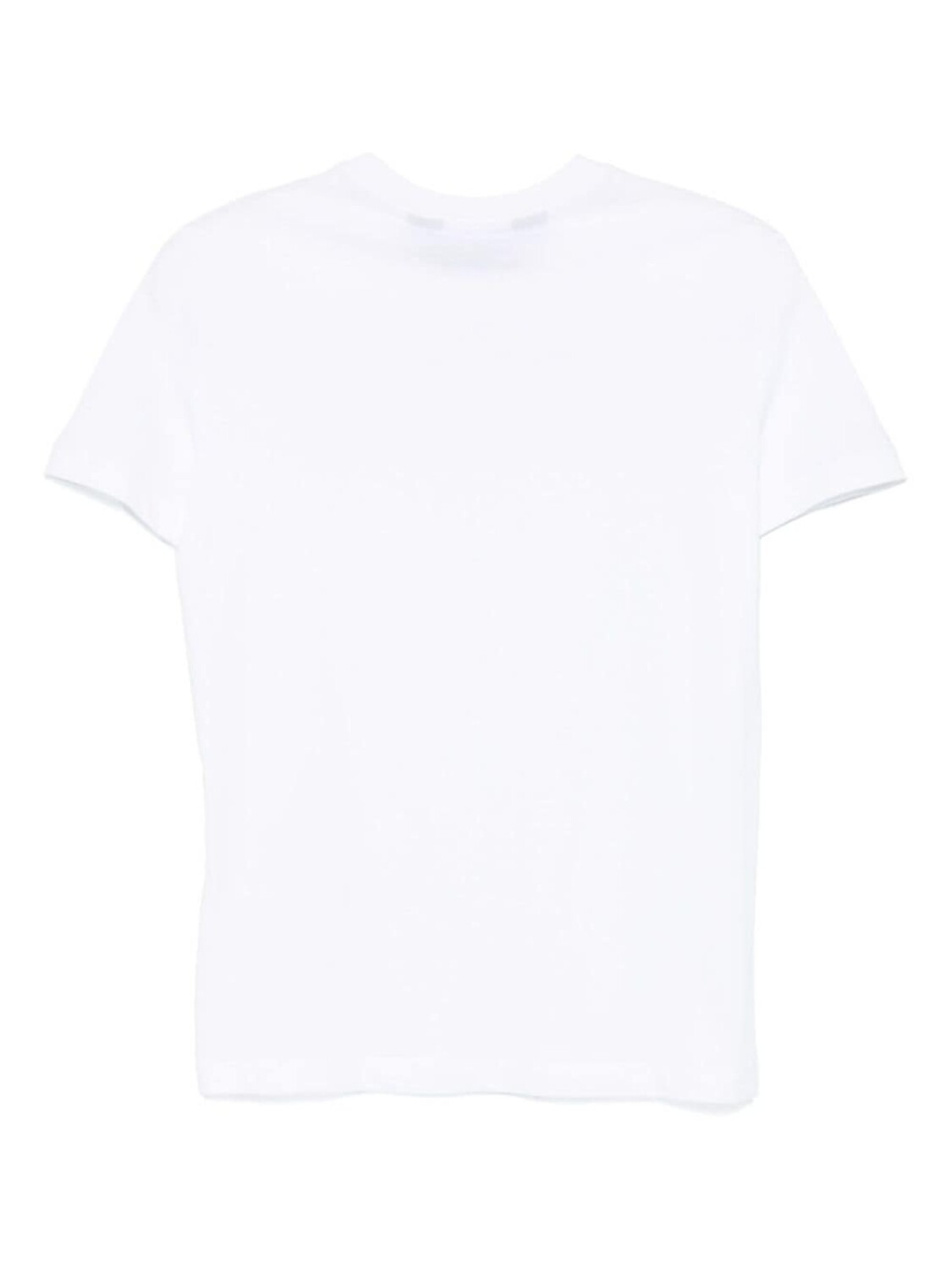 Белый, хлопок, ткань джерси, логотип спереди, круглый вырез в рубчик, короткие рукава, прямой подол