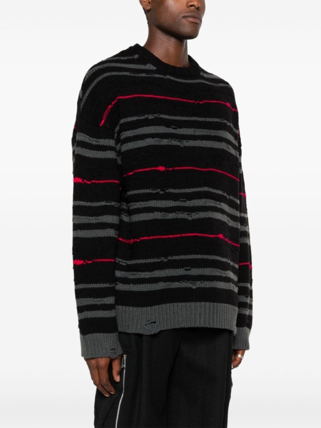 Juun.J полосатый джемпер с приспущенными плечами, черный