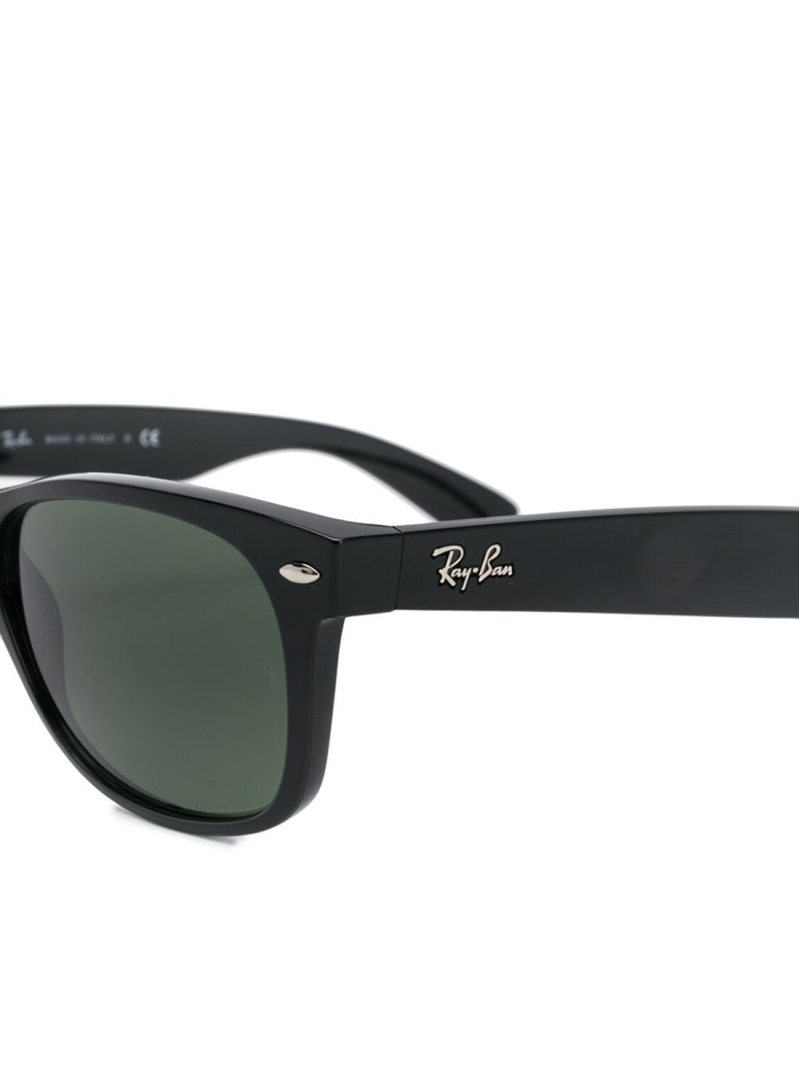 Солнцезащитные очки в квадратной оправе от Ray Ban (Рэй Бан). Затемненные линзы и логотип бренда на внешней стороне дужки. Цвет: черный. Прилагается защитный чехол.