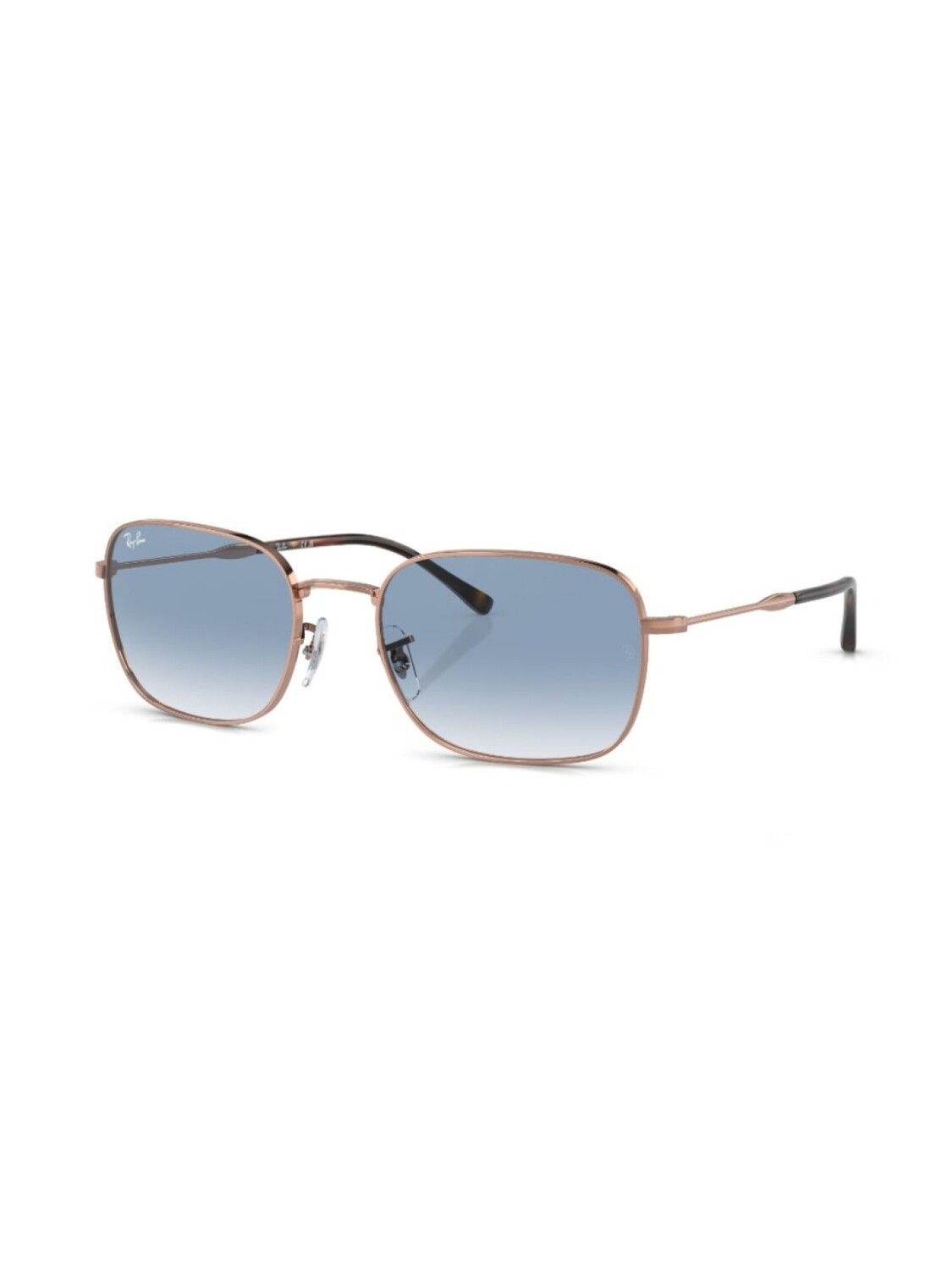 Розовое золото, защитная пленка, квадратная оправа, градиентные линзы, носоупоры, прямые дужки и дужки с закругленными концами. В комплект входит защитный чехол для очков.