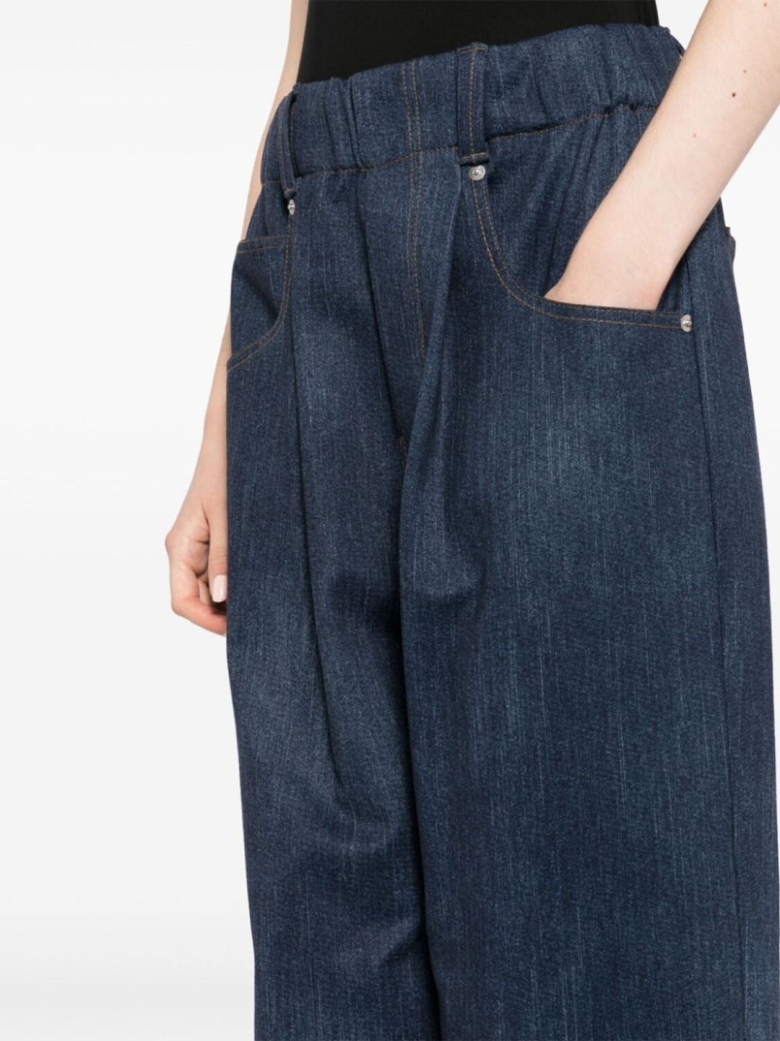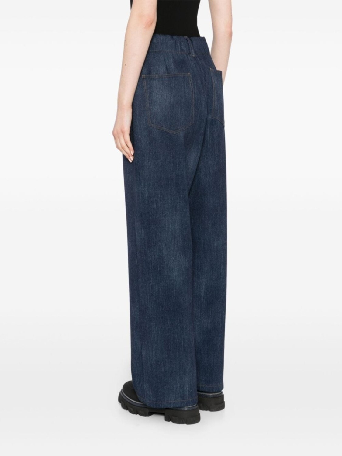 Индигово-синий джинсовый эффект классический пять карманов прямой подол затягивающийся шнурок на талии