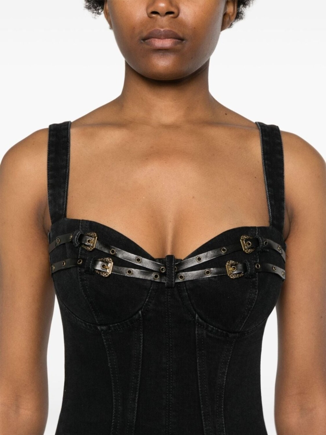 Versace Jeans Couture джинсовое платье миди с поясом, черный