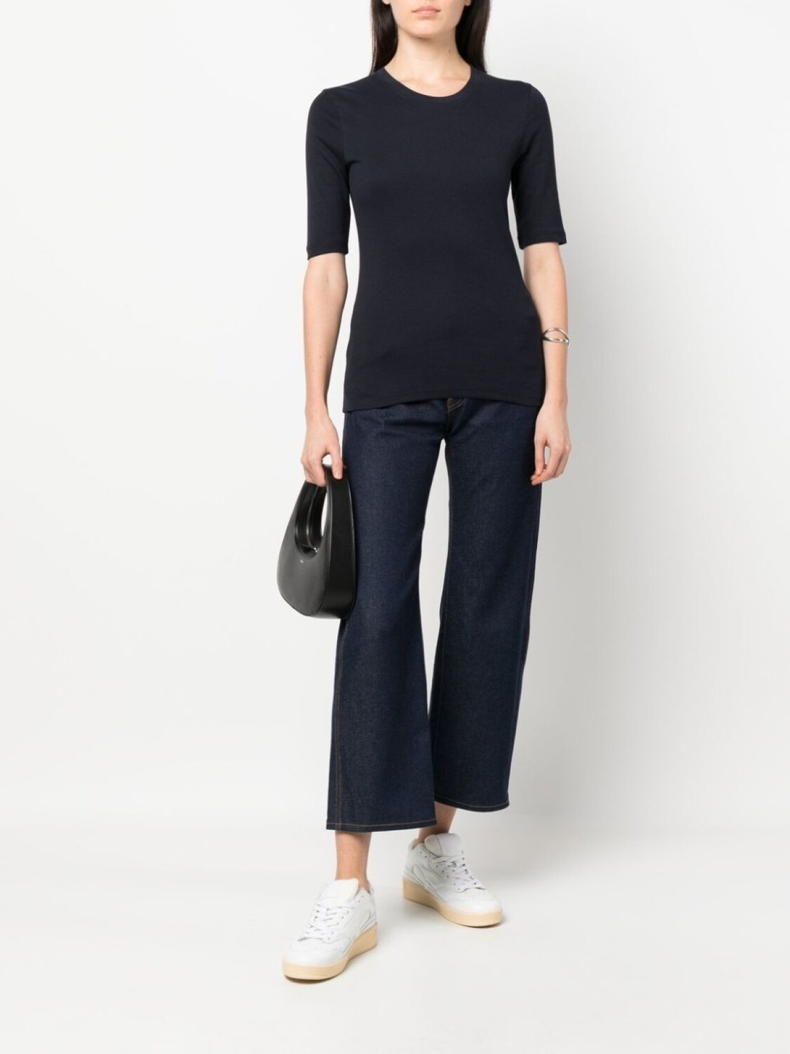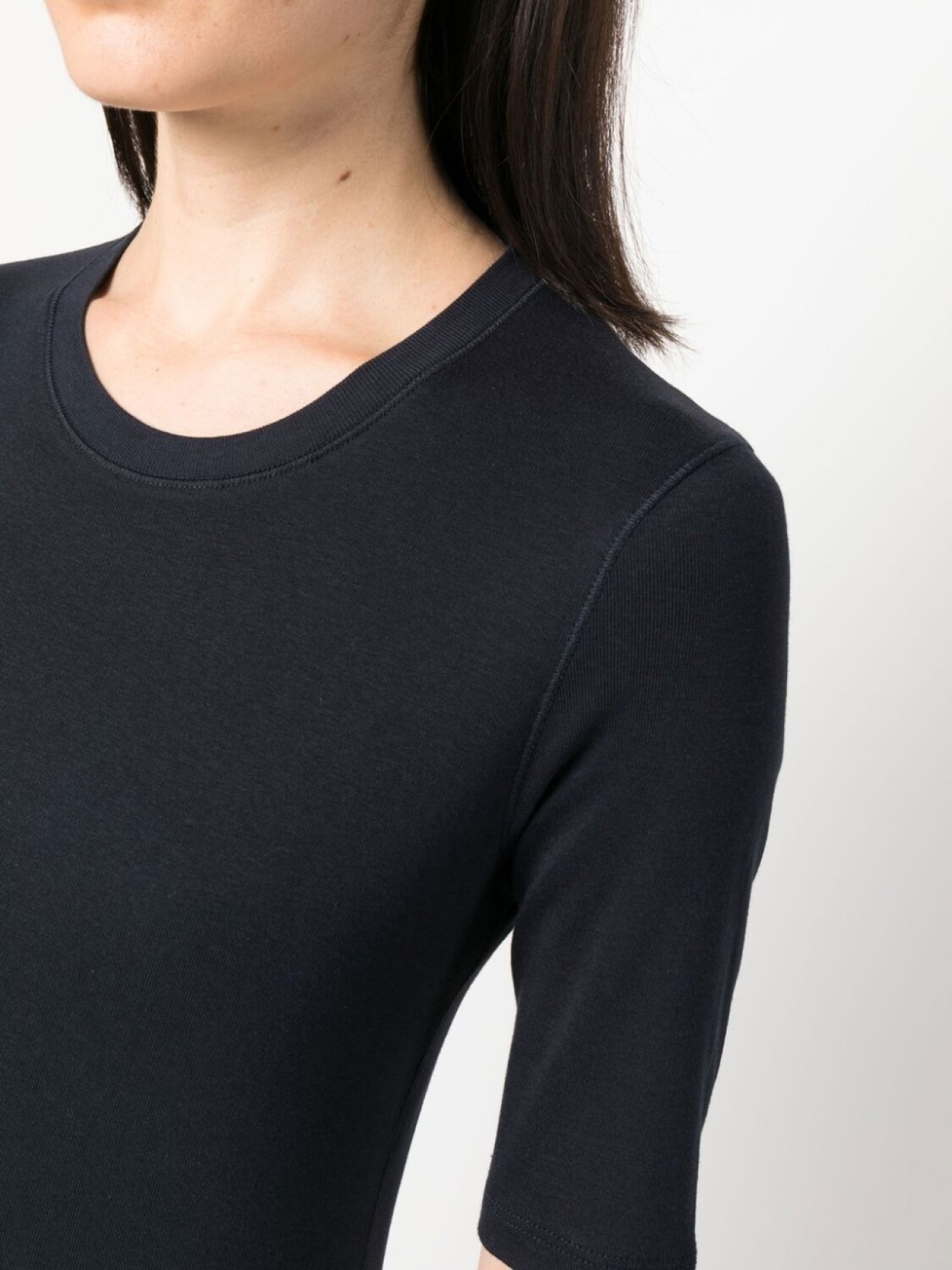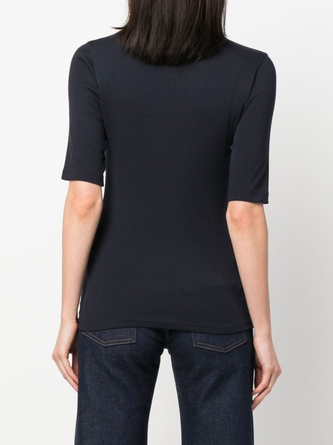 Синий, смесовый хлопок, круглый вырез, рукава три четверти и прямой подол. Conscious: Этот товар как минимум на 50% состоит из материалов, которые признаны более безопасными для окружающей среды или сертифицированы независимыми организациями.