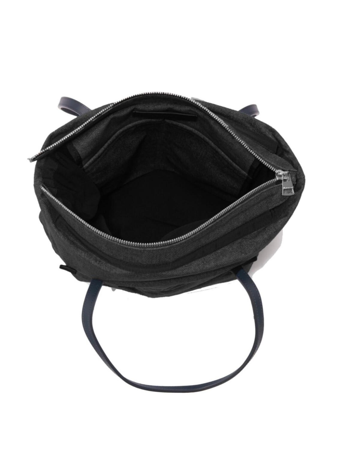 Черный, телячья кожа, логотип с инициалами JW в виде якоря, дутый материал, две верхние ручки, застежка на молнии сверху, основное отделение, внутренний накладной карман