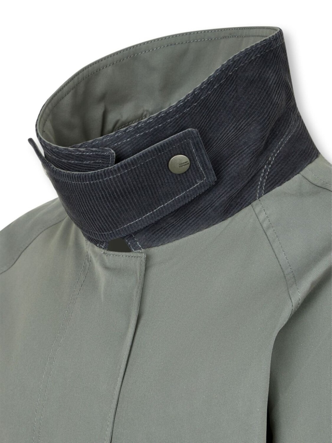 Прохладный серый хлопковый микс потайная застежка-молния спереди классический воротник пояс на талии длинные рукава два накладных кармана по бокам прямой подол