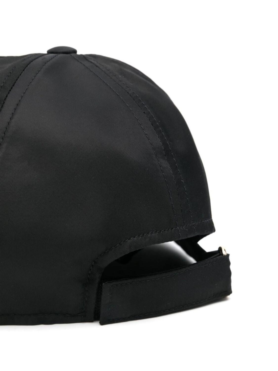 Черный изогнутый козырек, конструкция из шести панелей, бляшка с логотипом, застежка на липучке сзади, подкладка с логотипом и жаккардовым узором