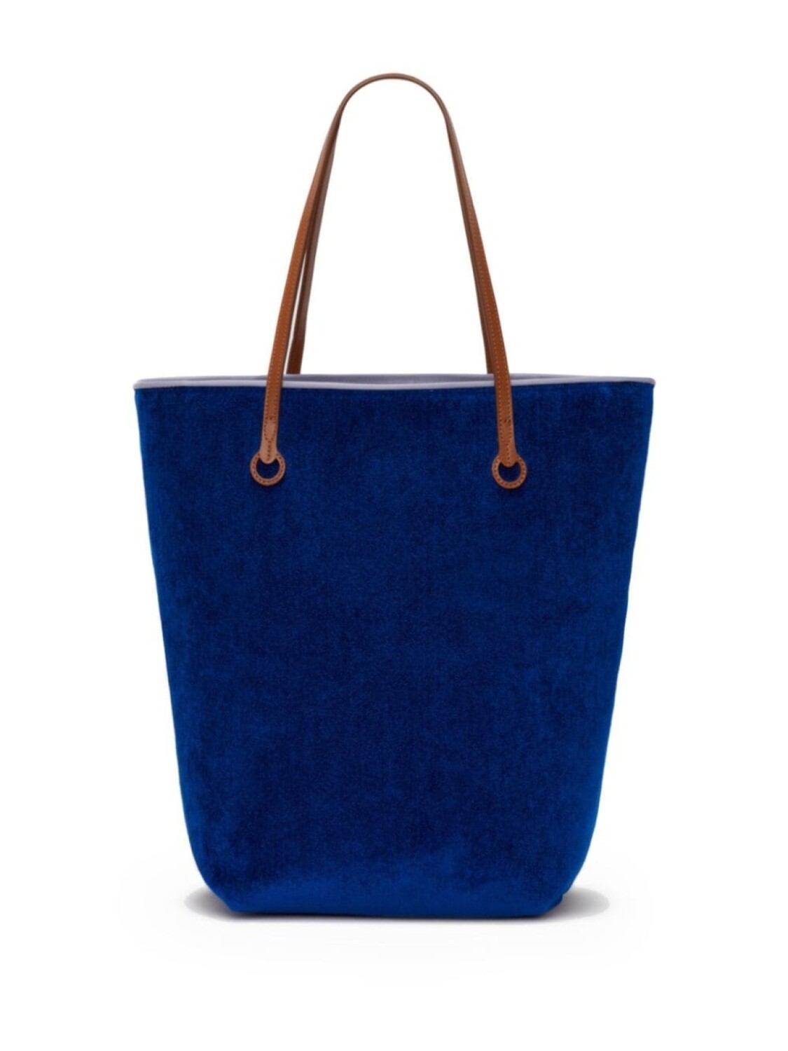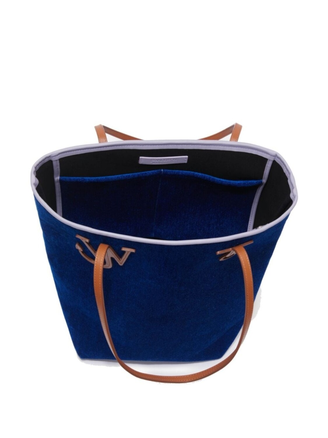 Королевский синий/карамельно-коричневый текстурированная отделка фирменные инициалы JW логотип якорь контрастная отделка две длинные верхние ручки открытое верхнее основное отделение внутренняя бирка с логотипом внутренний накладной карман
