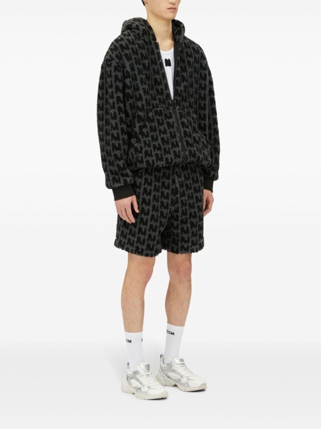MSGM фактурное худи на молнии с логотипом, серый