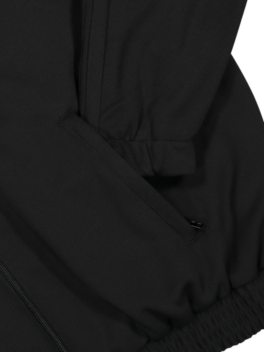 Черный, застежка на молнии спереди, два кармана на молнии по бокам, эластичные манжеты, эластичный подол