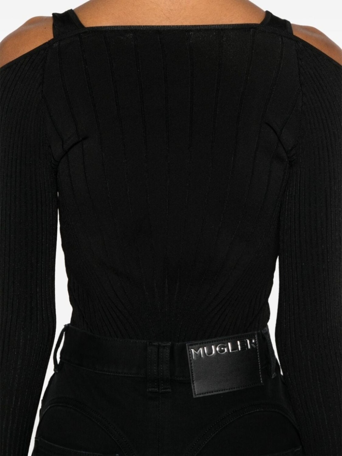 Mugler боди с длинными рукавами и завязками, черный