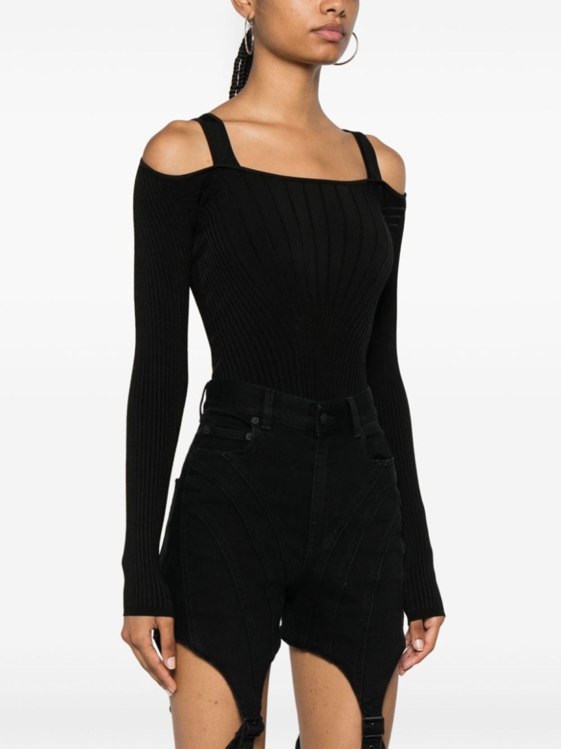 Mugler боди с длинными рукавами и завязками, черный 24 690₽