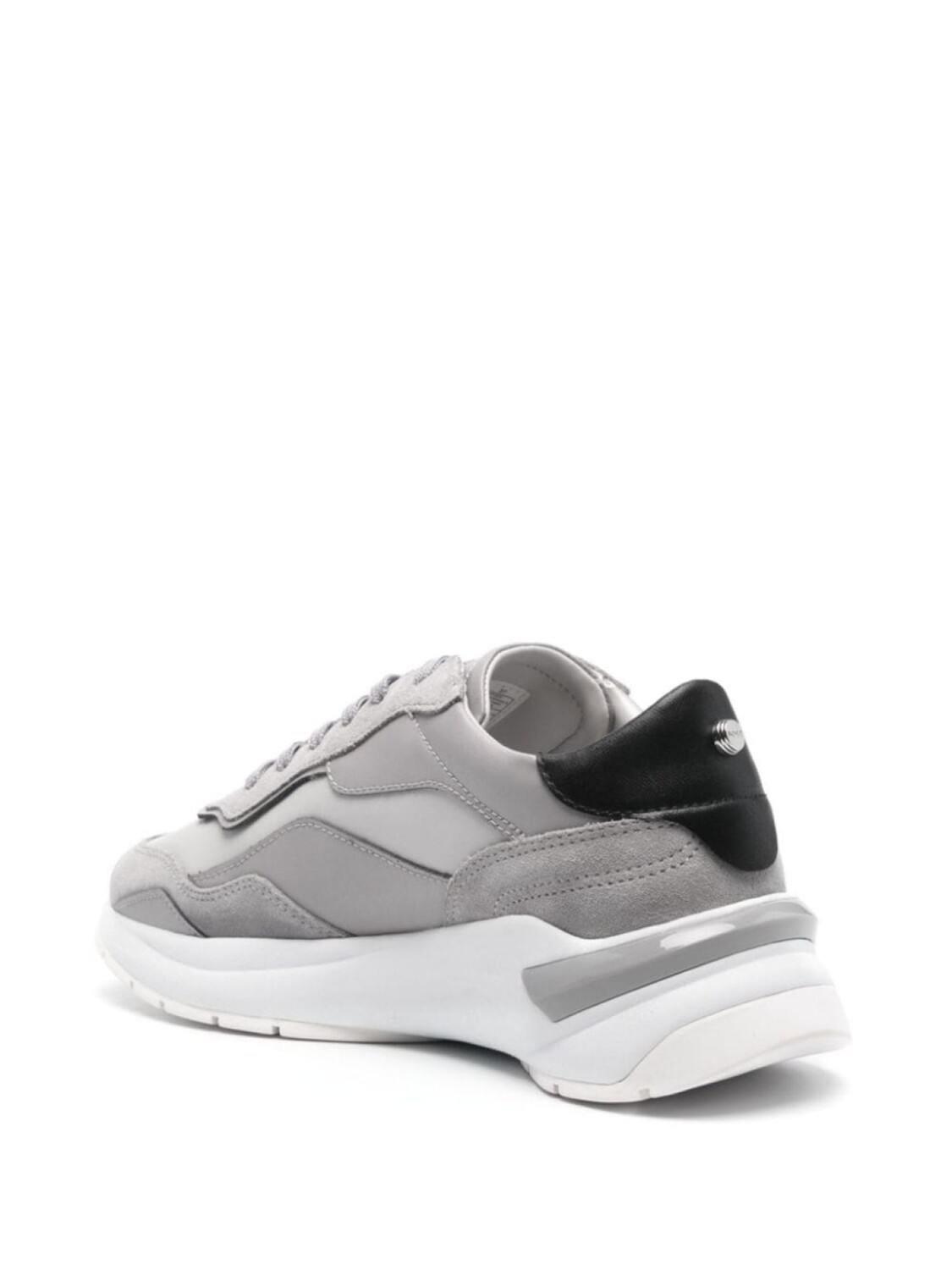 Серый/белый, телячья кожа, дизайн со вставками, тисненый логотип на язычке, вышитый логотип сбоку, контрастный задник, шнуровка спереди, закругленный носок, стелька с логотипом, ребристая резиновая подошва