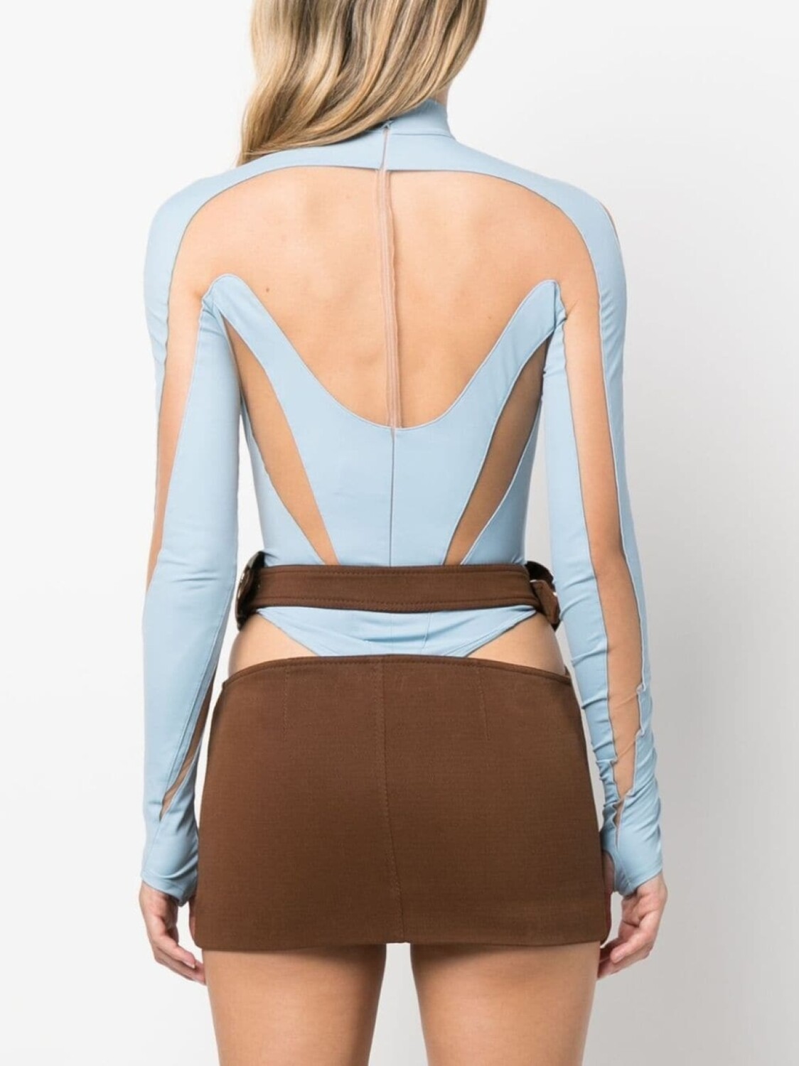 Mugler боди с прозрачными вставками, синий 53 439₽