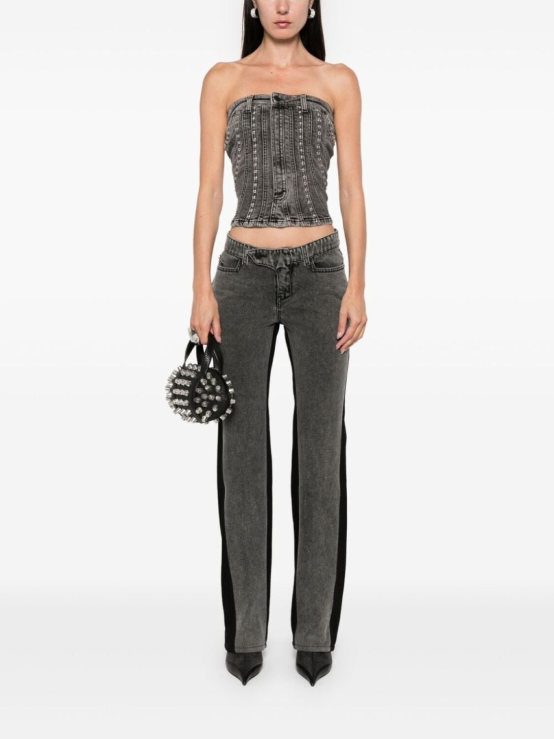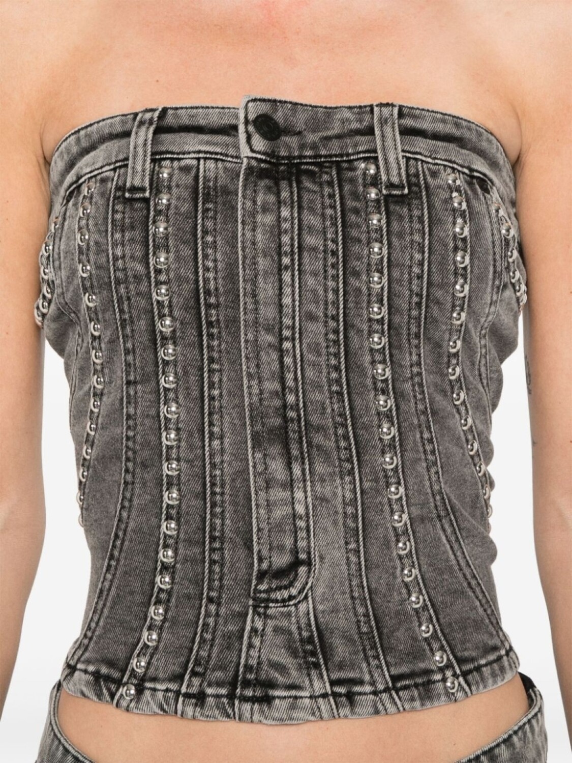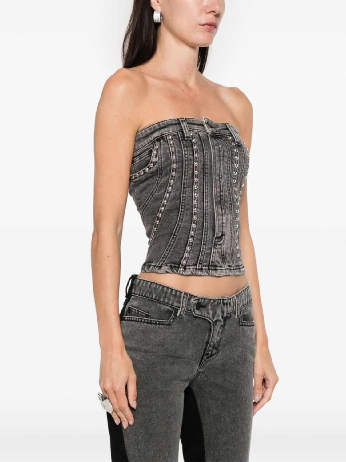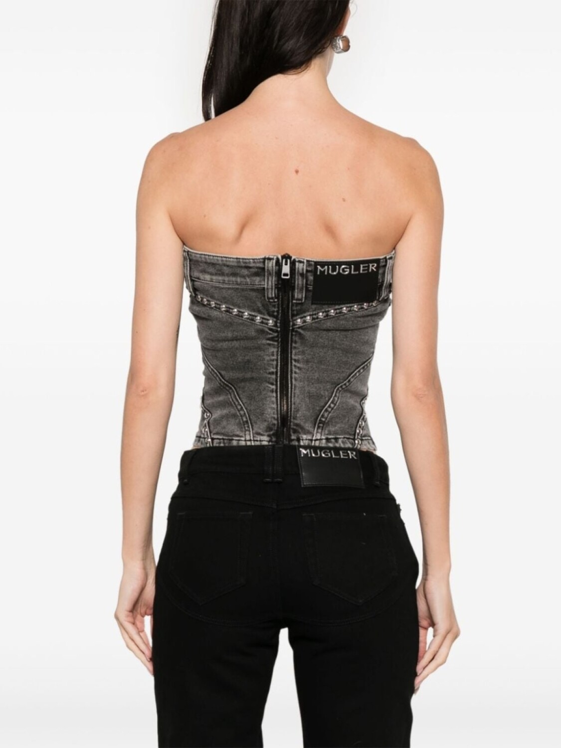 Mugler джинсовый топ-бюстье с заклепками, черный