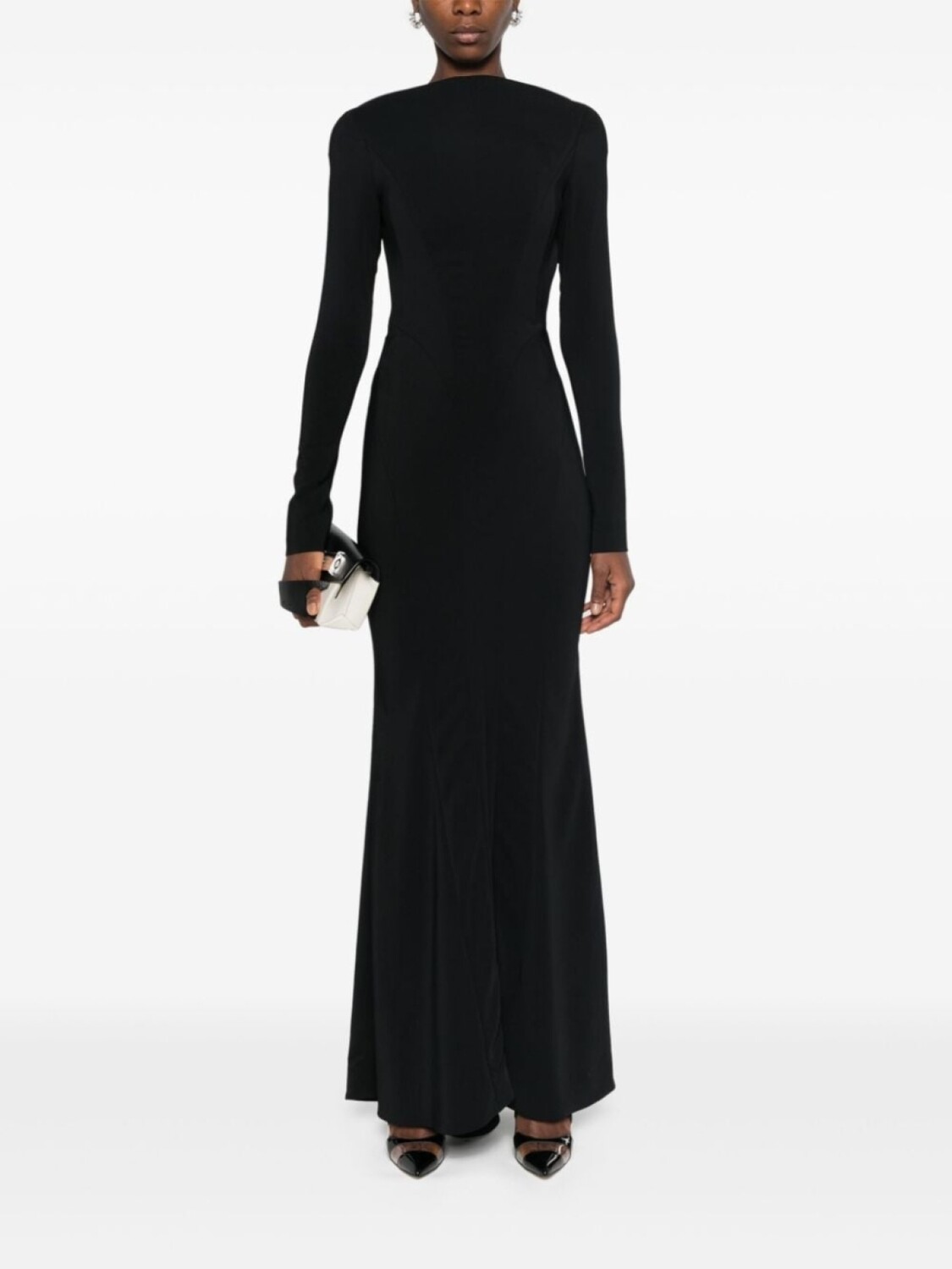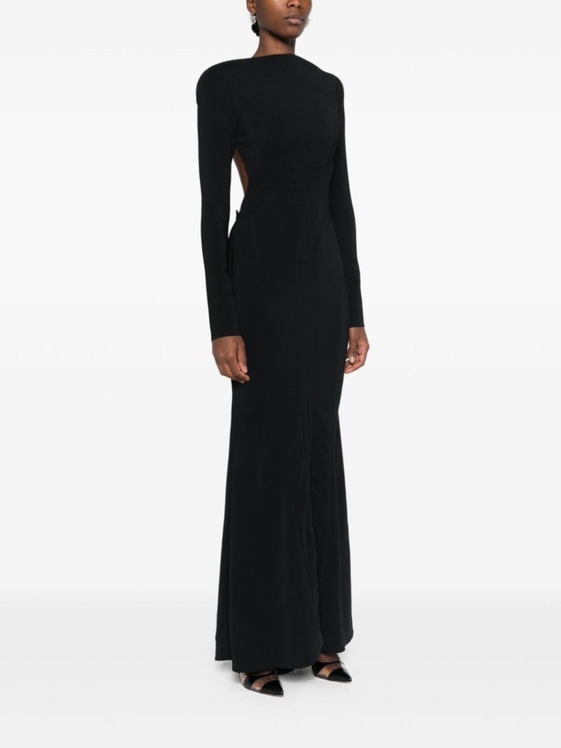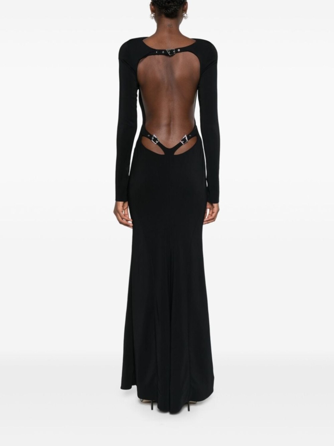 Mugler креповое платье с открытой спиной, черный