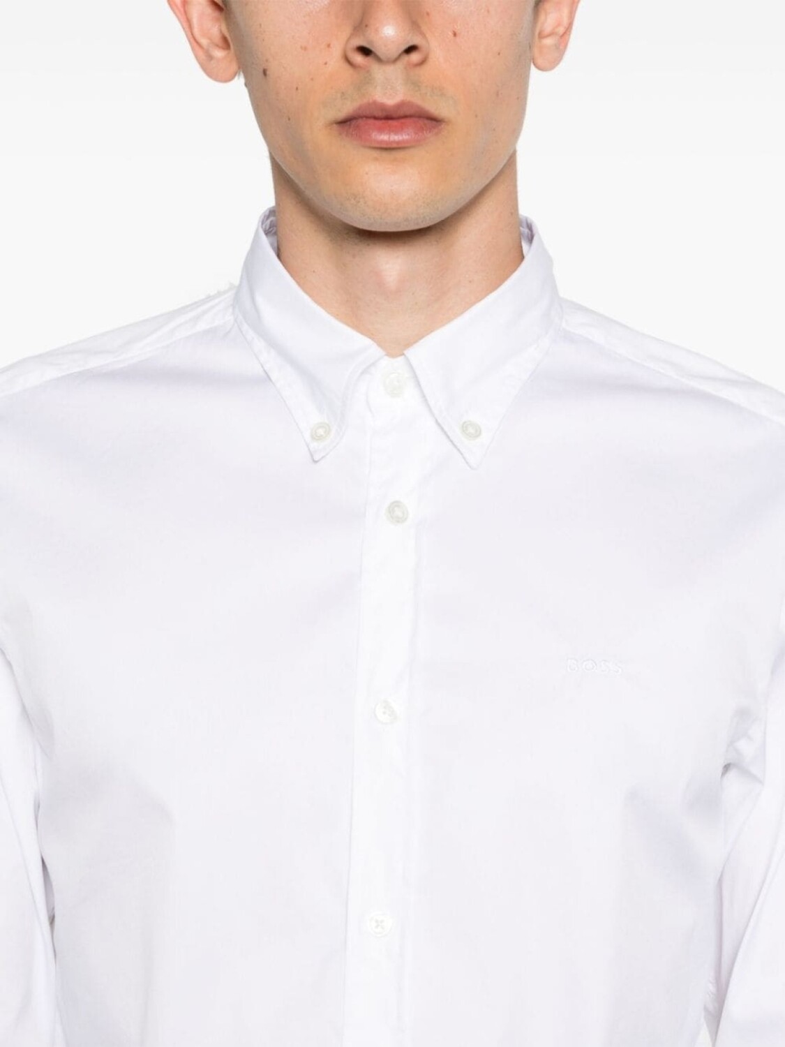 BOSS поплиновая рубашка с вышитым логотипом, белый