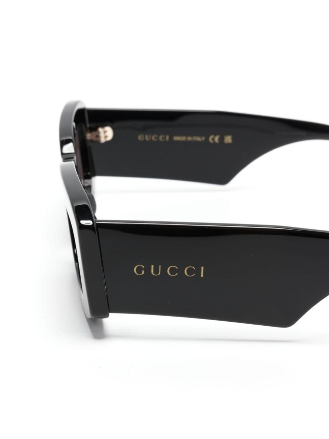 Gucci Eyewear солнцезащитные очки в прямоугольной оправе с гравировкой логотипа, черный