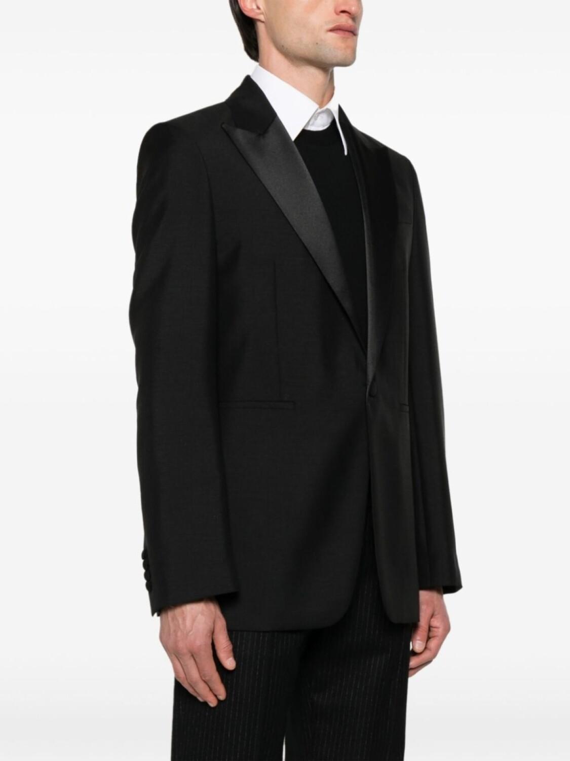 • заостренные лацканы с атласными вставками