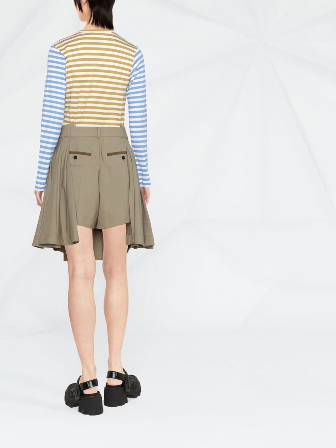 Разноцветный, хлопок, принт в горизонтальную полоску, вышитый логотип на груди, круглый вырез, длинные рукава и прямой подол.