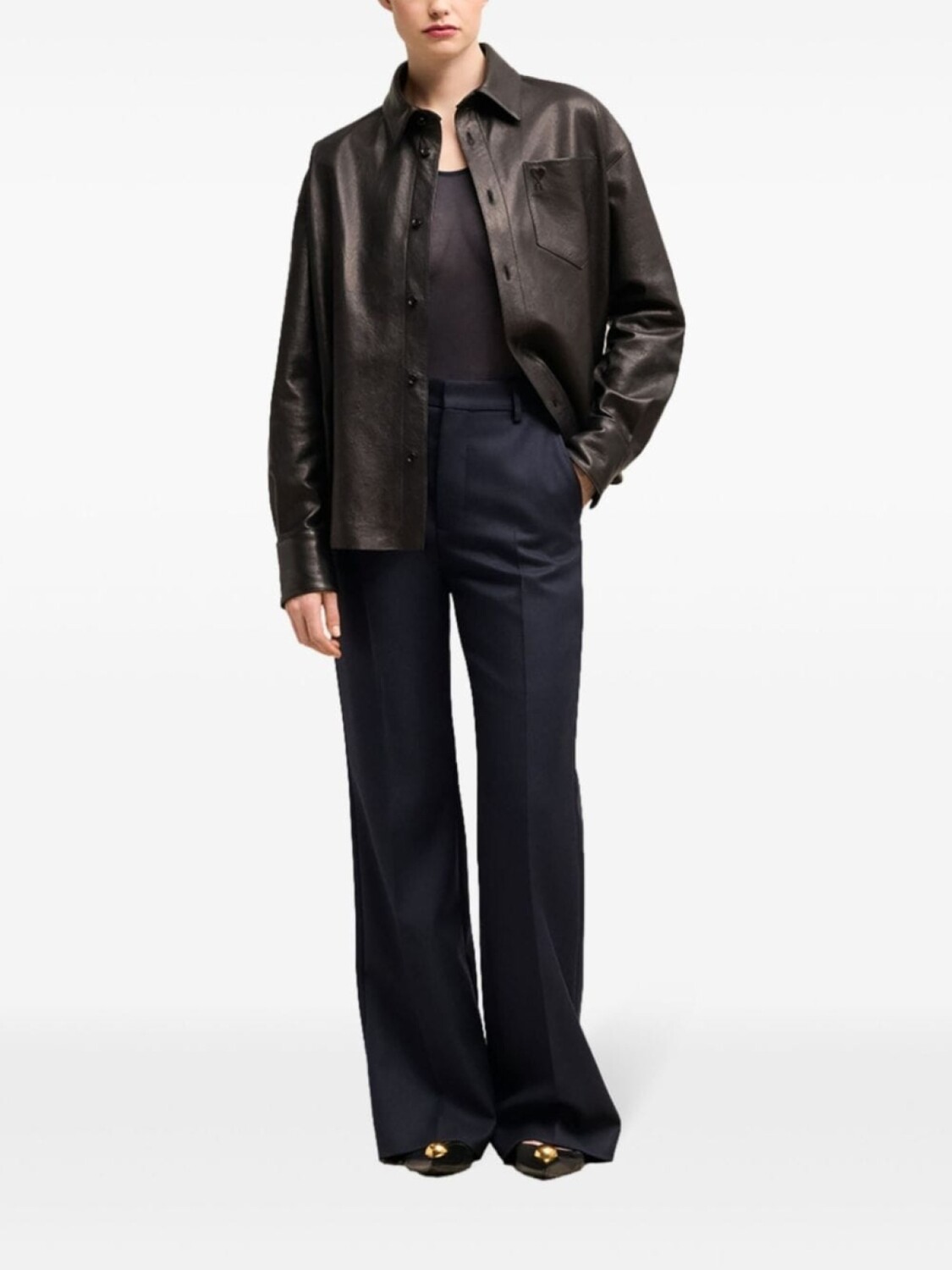 AMI Paris расклешенные брюки с завышенной талией, синий