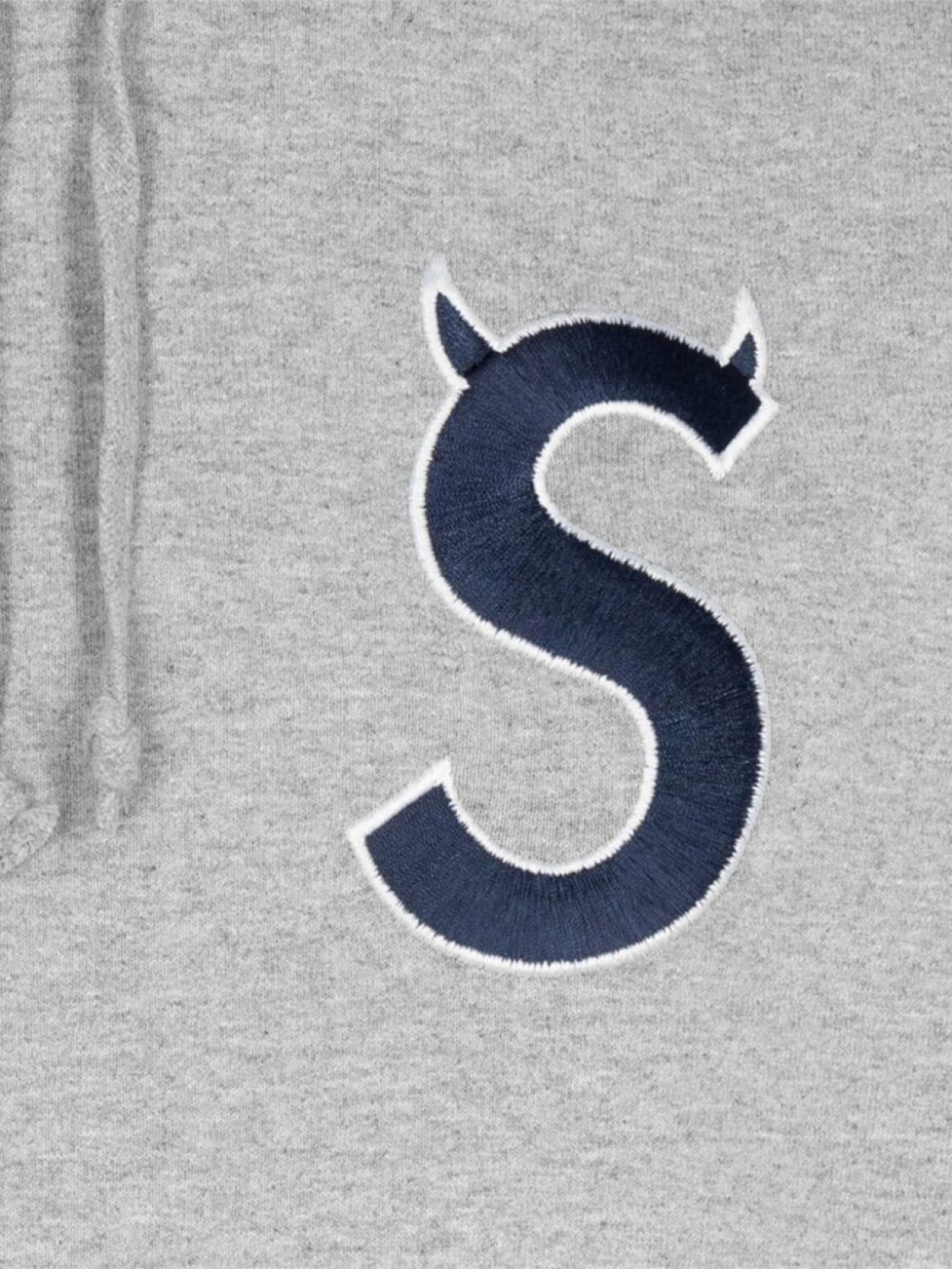Светло-серый, хлопок, вышитый логотип на груди, вышитый логотип сзади, затягивающийся на шнурок капюшон, карман-муфта, длинные рукава и прямой подол. Это унисекс-модель. Обратите внимание, что для нее используется мужская размерная сетка.