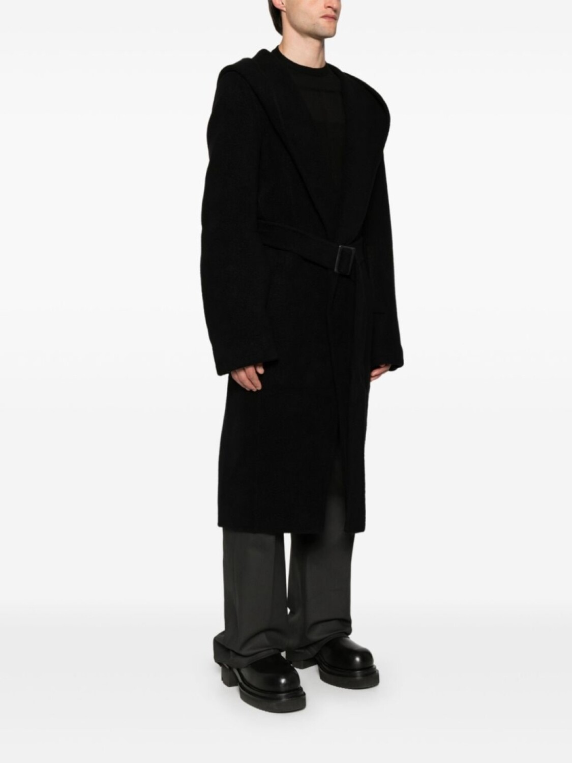 Rick Owens кашемировое пальто Slim Hoodie, черный