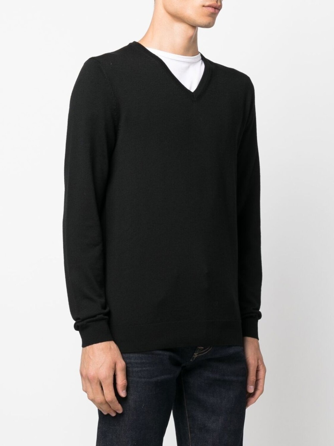 BOSS шерстяной джемпер с V-образным вырезом, черный