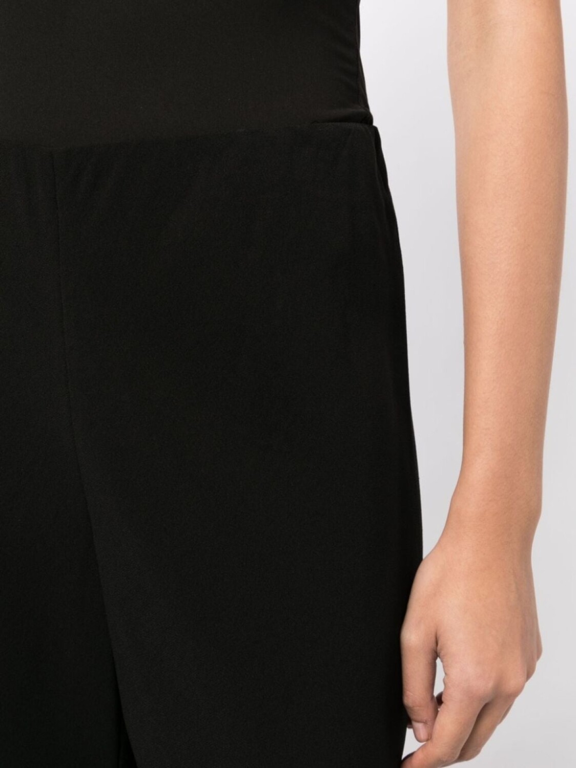 Черный, завышенная талия, эластичный пояс и прямой крой.