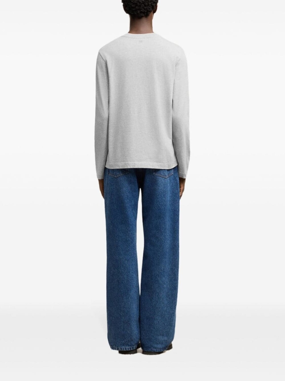 Серый органический хлопок длинные рукава вышитый логотип на груди круглый вырез прямой подол Этот товар изготовлен из не менее 50% органических материалов. Узнайте больше о том, что делает продукт сознательным на нашей странице Conscious Criteria