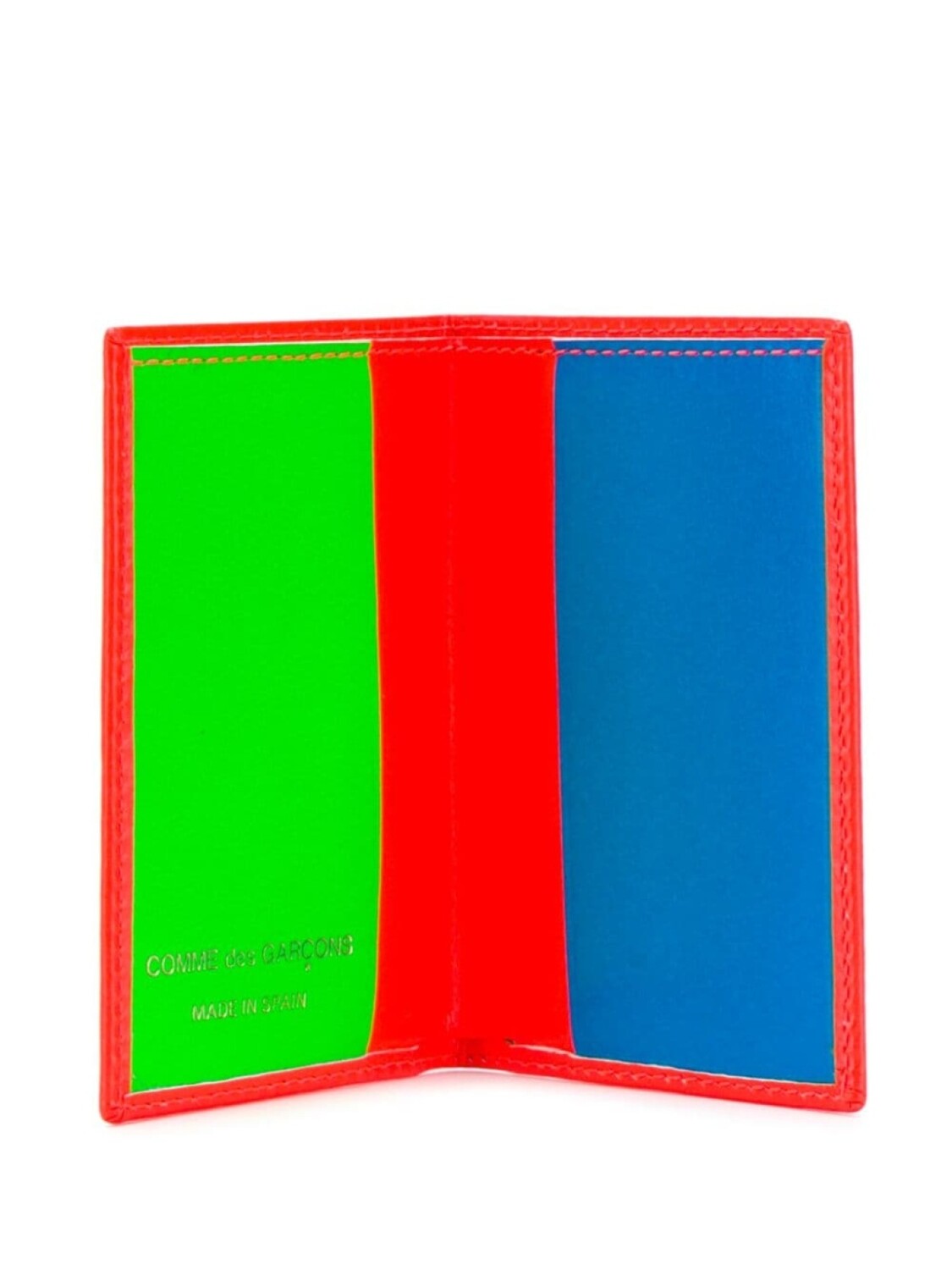 Бумажник Super Fluo от Comme des Garçons Wallets. Прямоугольная форма, несколько отделений для карт, отделение для купюр и внутренняя печать с тисненым логотипом. Цвет: оранжевый. Модель в стиле унисекс. Мужская система размеров.